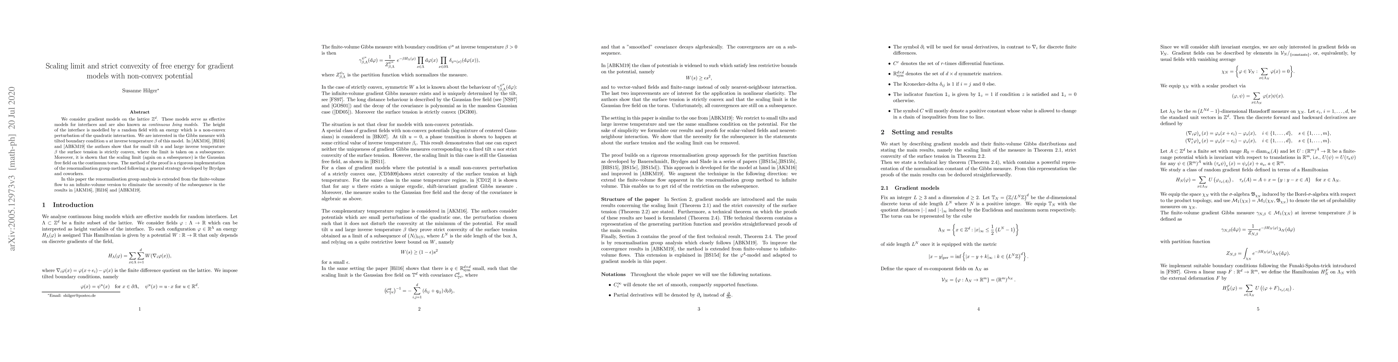 We consider gradient models on the lattice $\mathbb{Z}^d$. These models serve as effective models for interfaces and are also known as continuous Ising models. The height of the interface is modelled by a random field with an energy which is a non-convex perturbation of the quadratic interaction. We are interested in the Gibbs measure with tilted boundary condition $u$ at inverse temperature $\beta$ of this model. In [AKM16], [Hil16] and [ABKM19] the authors show that for small tilt $u$ and large inverse temperature $\beta$ the surface tension is strictly convex, where the limit is taken on a subsequence. Moreover, it is shown that the scaling limit (again on a subsequence) is the Gaussian free field on the continuum torus. The method of the proof is a rigorous implementation of the renormalisation group method following a general strategy developed by Brydges and coworkers. In this paper the renormalisation group analysis is extended from the finite-volume flow to an infinite-volume version to eliminate the necessity of the subsequence in the results in [AKM16], [Hil16] and [ABKM19].
