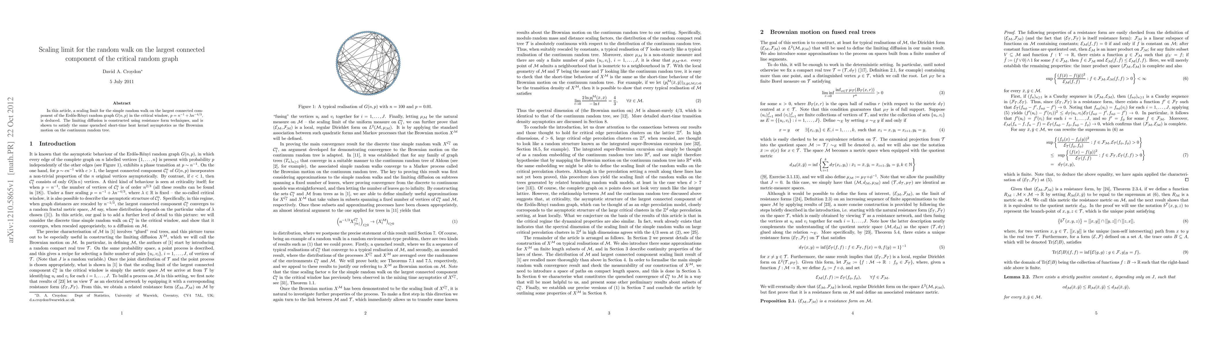 Summary: The paper establishes a scaling limit for the simple random walk on the largest connected component of the critical Erdos-Renyi random graph, demonstrating that the limiting diffusion matches the Brownian motion on the continuum random tree through resistance form techniques.