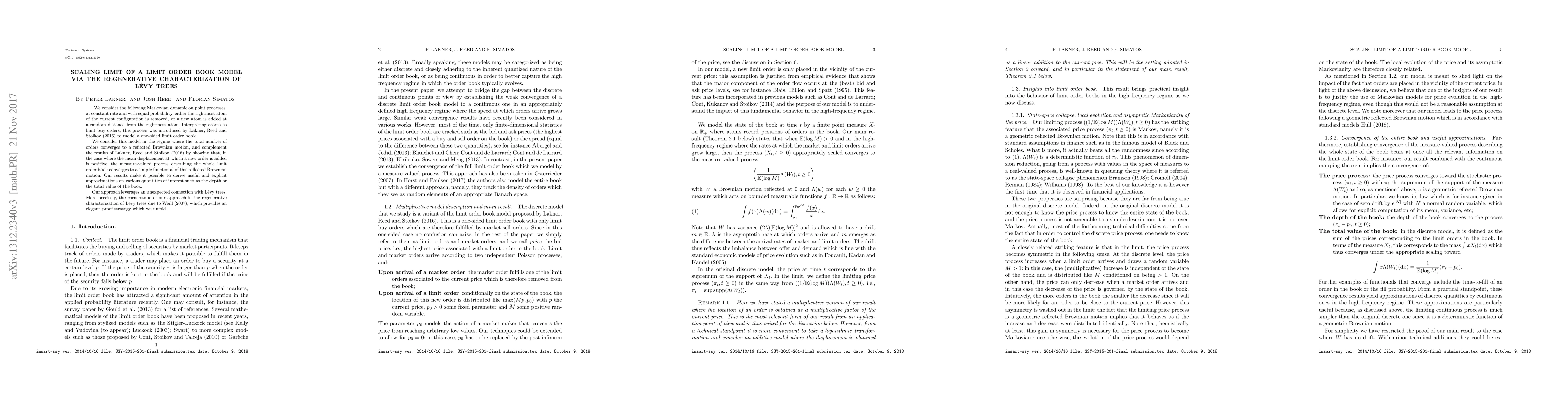 We consider the following Markovian dynamic on point processes: at constant rate and with equal probability, either the rightmost atom of the current configuration is removed, or a new atom is added at a random distance from the rightmost atom. Interpreting atoms as limit buy orders, this process was introduced by Lakner et al. to model a one-sided limit order book. We consider this model in the regime where the total number of orders converges to a reflected Brownian motion, and complement the results of Lakner et al. by showing that, in the case where the mean displacement at which a new order is added is positive, the measure-valued process describing the whole limit order book converges to a simple functional of this reflected Brownian motion. Our results make it possible to derive useful and explicit approximations on various quantities of interest such as the depth or the total value of the book. Our approach leverages an unexpected connection with L\'evy trees. More precisely, the cornerstone of our approach is the regenerative characterization of L\'evy trees due to Weill, which provides an elegant proof strategy which we unfold.
