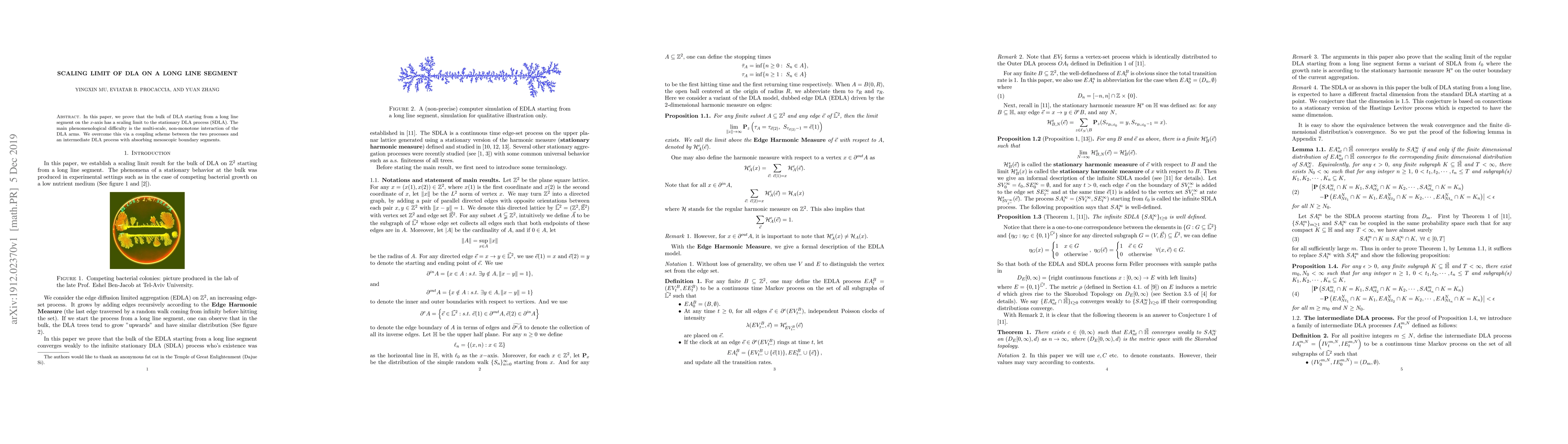 In this paper, we prove that the bulk of DLA starting from a long line segment on the $x$-axis has a scaling limit to the stationary DLA process (SDLA). The main phenomenological difficulty is the multi-scale, non-monotone interaction of the DLA arms. We overcome this via a coupling scheme between the two processes and an intermediate DLA process with absorbing mesoscopic boundary segments.