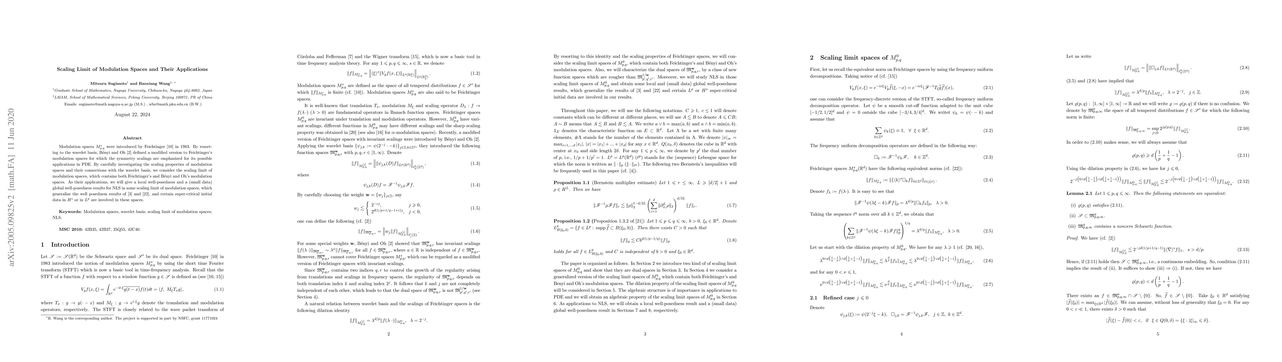 Modulation spaces $M^s_{p,q}$ were introduced by Feichtinger \cite{Fei83} in 1983. By resorting to the wavelet basis, B\'{e}nyi and Oh \cite{BeOh20} defined a modified version to Feichtinger's modulation spaces for which the symmetry scalings are emphasized for its possible applications in PDE. By carefully investigating the scaling properties of modulation spaces and their connections with the wavelet basis, we will introduce a class of generalized modulation spaces, which contain both Feichtinger's and B\'{e}nyi and Oh's modulation spaces. As their applications, we will give a local well-posedness and a (small data) global well-posedness results for NLS in some rougher generalized modulation spaces, which generalize the well posedness results of \cite{BeOk09} and \cite{WaHud07}, and certain super-critical initial data in $H^s$ or in $L^p$ are involved in these spaces.
