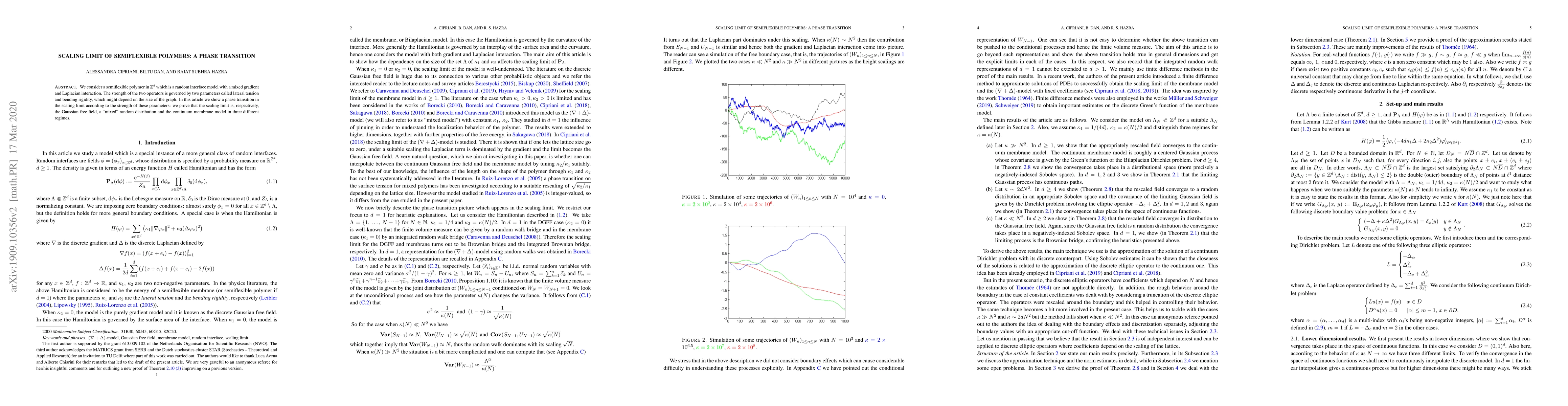 This paper investigates the scaling limit behavior of semiflexible polymers in $\mathbb Z^d$, revealing a phase transition dependent on lateral tension and bending rigidity. The authors demonstrate that the scaling limit corresponds to the Gaussian free field, a mixed random distribution, or the continuum membrane model in three distinct parameter regimes.