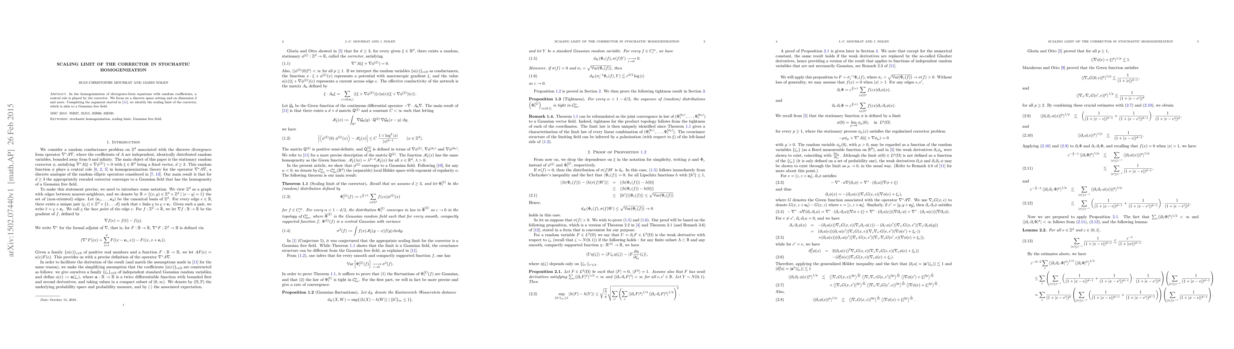 Summary: This paper completes the analysis of the scaling limit of the corrector in stochastic homogenization for divergence-form equations with random coefficients in three or higher dimensions, identifying it as analogous to a Gaussian free field.