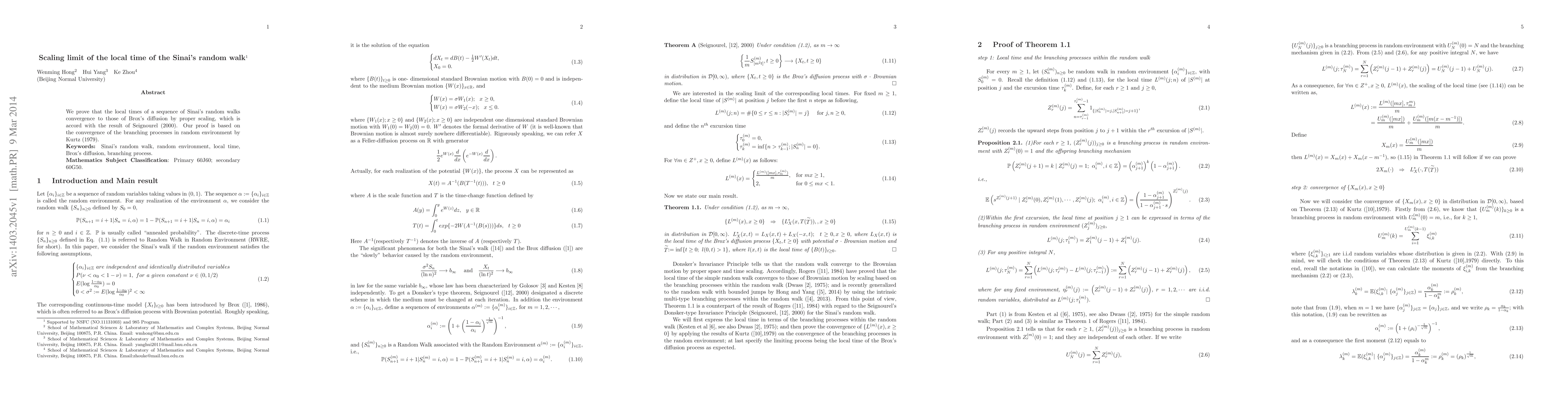 We prove that the local times of a sequence of Sinai's random walks convergence to those of Brox's diffusion by proper scaling, which is accord with the result of Seignourel (2000). Our proof is based on the convergence of the branching processes in random environment by Kurtz (1979).