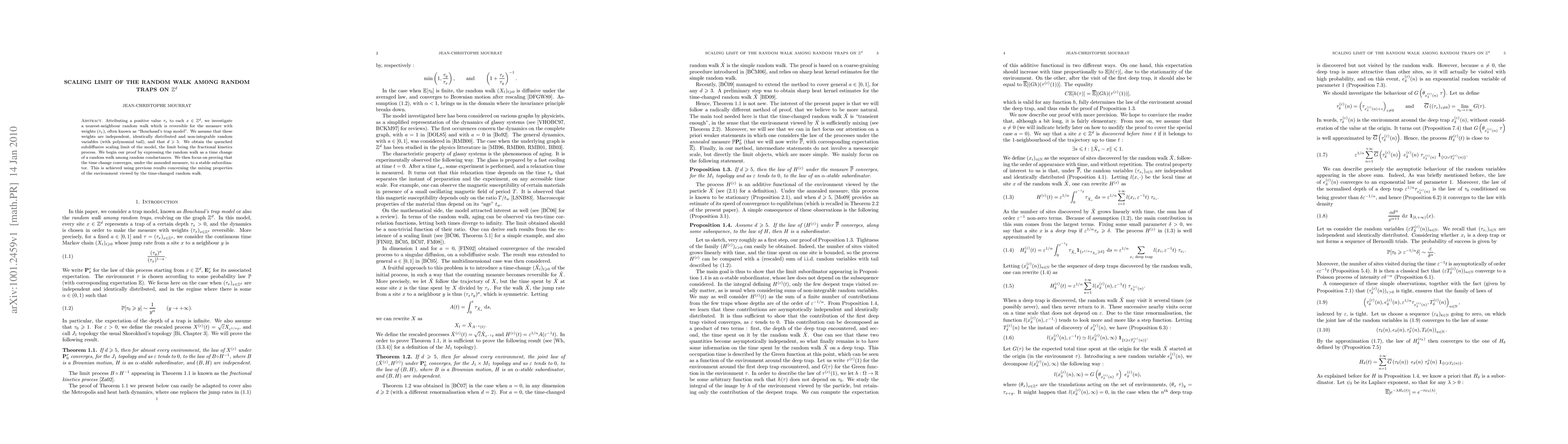 Researchers investigate a random walk among random traps on d-dimensional space, finding that it converges to fractional kinetics process under certain conditions. They achieve this through a time-change method, leveraging previous results on the mixing properties of the environment.