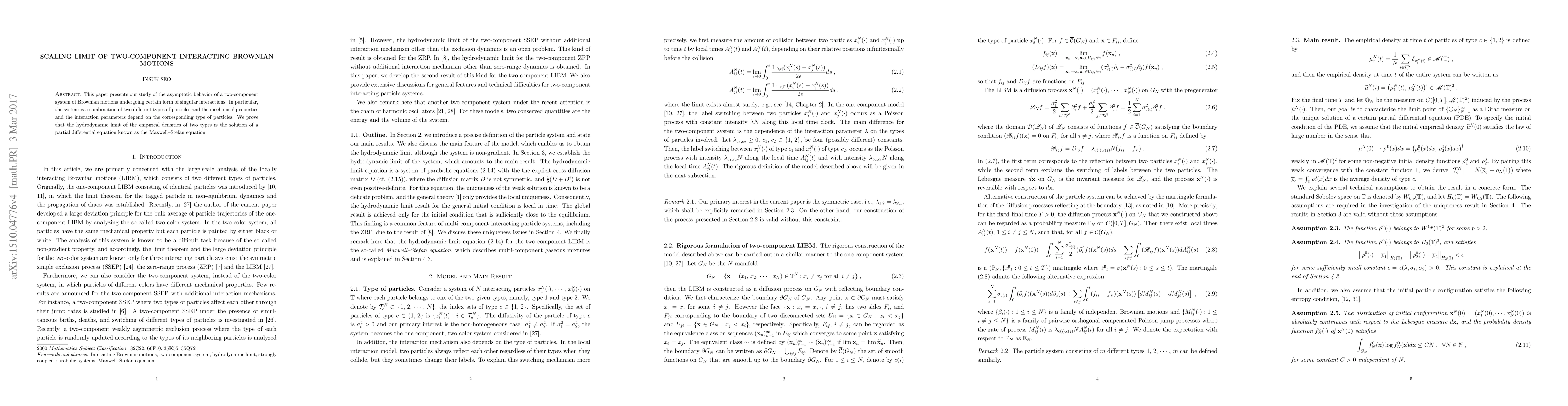 This paper investigates the asymptotic behavior of a two-component system of interacting Brownian motions, demonstrating that the hydrodynamic limit of empirical densities solves the Maxwell-Stefan equation, a quasi-linear parabolic partial differential equation.