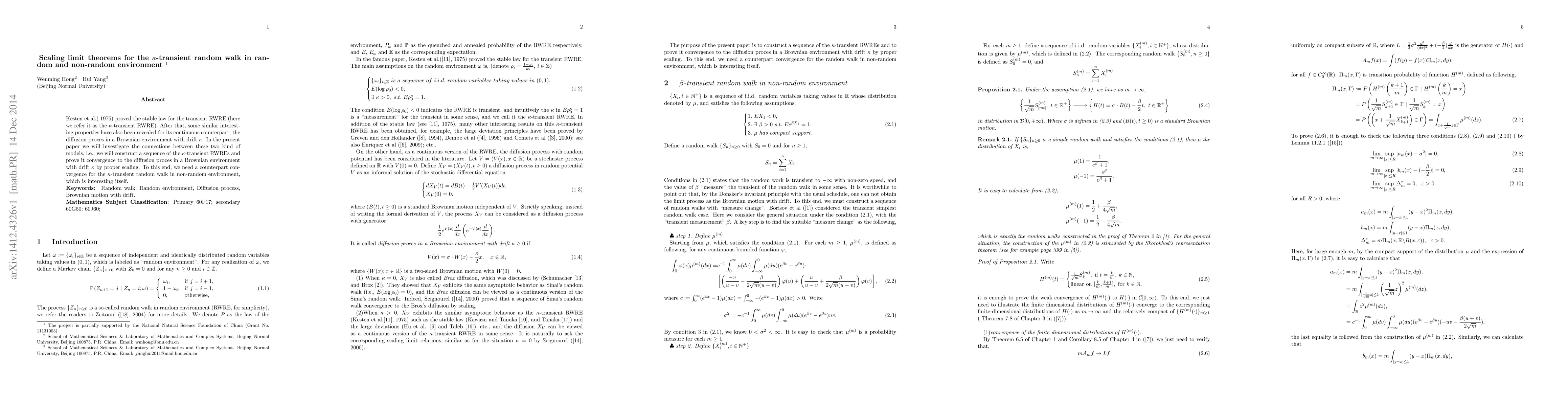 This paper investigates the connection between a kappa-transient random walk in random environment and its stable counterpart in Brownian environment with drift kappa, proving convergence through proper scaling.