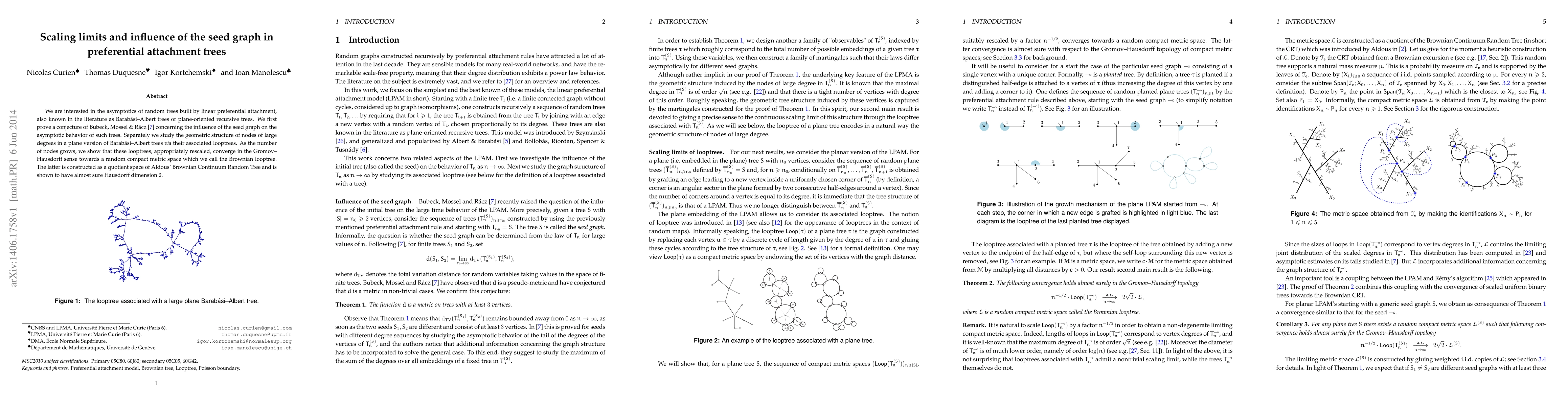 This paper investigates the asymptotic behavior of Barabási-Albert trees under linear preferential attachment, proving the influence of the seed graph on their growth. It also studies the geometric structure of high-degree nodes, showing that rescaled looptrees converge to a Brownian looptree with almost sure Hausdorff dimension of 2.
