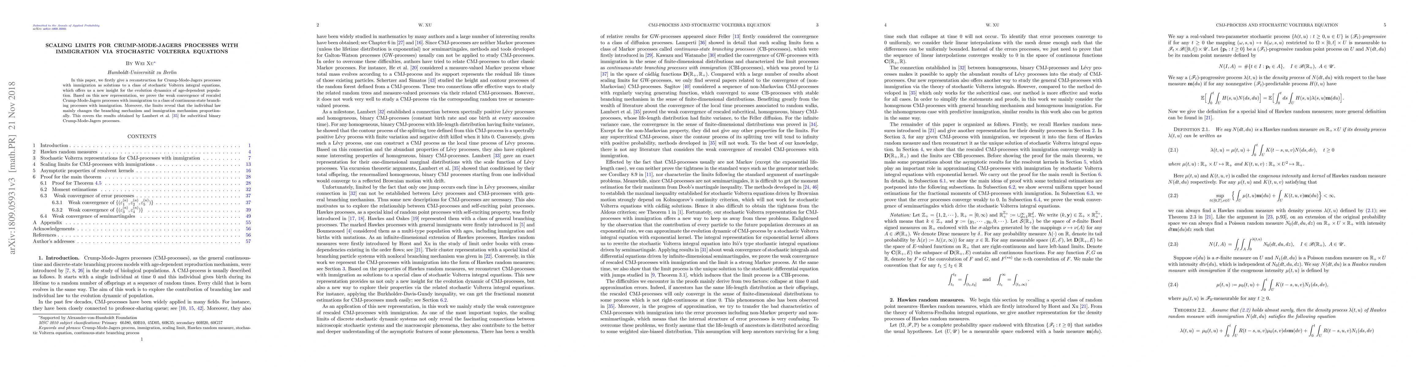 This paper reconstructs Crump-Mode-Jagers processes with immigration as solutions to stochastic Volterra integral equations, providing new insights into age-dependent population dynamics. It demonstrates the weak convergence of rescaled processes to continuous-state branching processes, showing that individual law changes branching and immigration mechanisms proportionally.