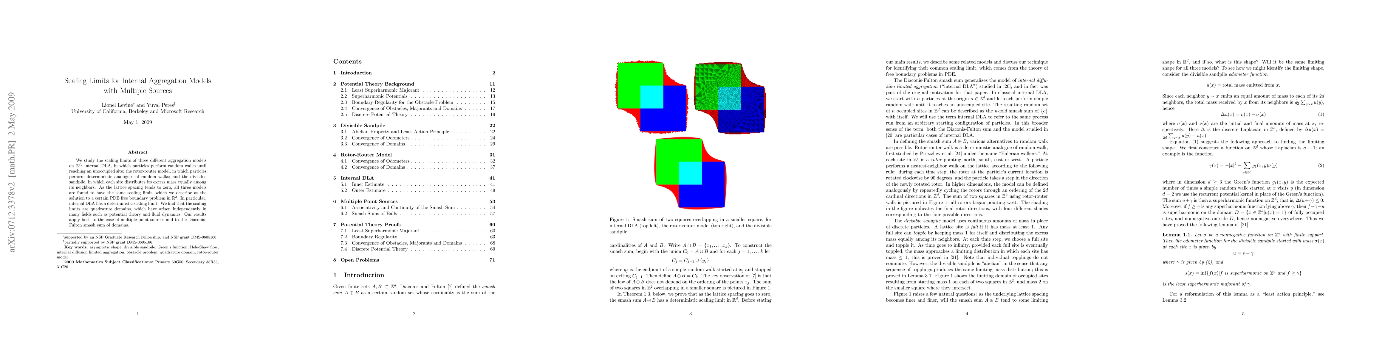 This paper investigates the scaling limits of three aggregation models on Z^d, revealing that they all converge to a common solution of a PDE free boundary problem in R^d. The models include internal DLA, rotor-router, and divisible sandpile, with internal DLA showing a deterministic limit. The findings identify these limits as quadrature domains, relevant across potential theory and fluid dynamics.