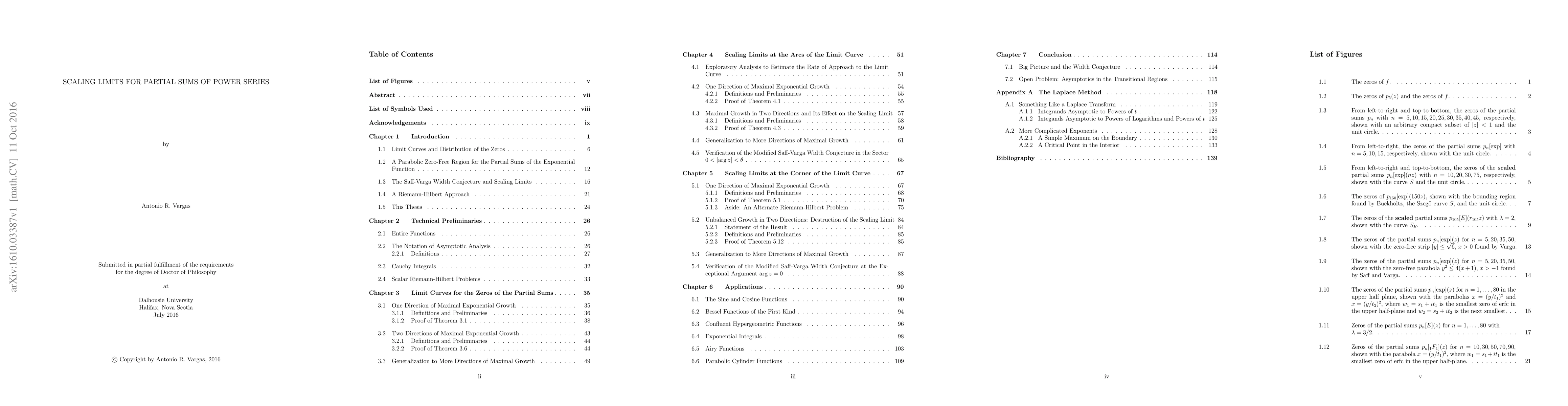 In this thesis we show that the partial sums of the Maclaurin series for a certain class of entire functions possess scaling limits in various directions in the complex plane. In doing so we obtain information about the zeros of the partial sums. We will only assume that these entire functions have a certain asymptotic behavior at infinity. With this information we will partially verify for this class of functions a conjecture on the location of the zeros of their partial sums known as the Saff-Varga Width Conjecture. The thesis begins by introducing the basics (and the not-so-basics) of the topic and includes a detailed survey of the relevant literature. The body of the thesis is then divided into chapters which look at different asymptotic regimes. Following that a chapter is dedicated to applying the results obtained to several well-known functions including the sine and cosine functions, Bessel functions, confluent hypergeometric functions, Airy functions, and parabolic cylinder functions. This chapter includes many figures which clearly illustrate the behavior we're interested in. The thesis closes with an appendix which aims to serve as an instructive introduction to the Laplace method of asymptotic analysis of integrals.
