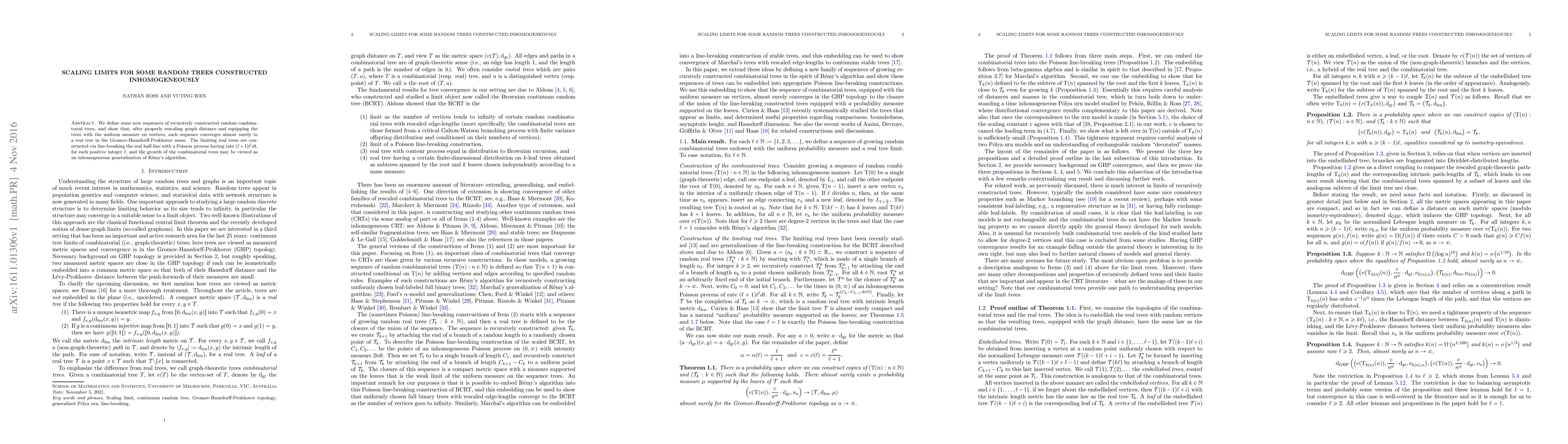 We define some new sequences of recursively constructed random combinatorial trees, and show that, after properly rescaling graph distance and equipping the trees with the uniform measure on vertices, each sequence converges almost surely to a real tree in the Gromov-Hausdorff-Prokhorov sense. The limiting real trees are constructed via line-breaking the real half-line with a Poisson process having rate $(\ell+1)t^\ell dt$, for each positive integer $\ell$, and the growth of the combinatorial trees may be viewed as an inhomogeneous generalization of R\'emy's algorithm.