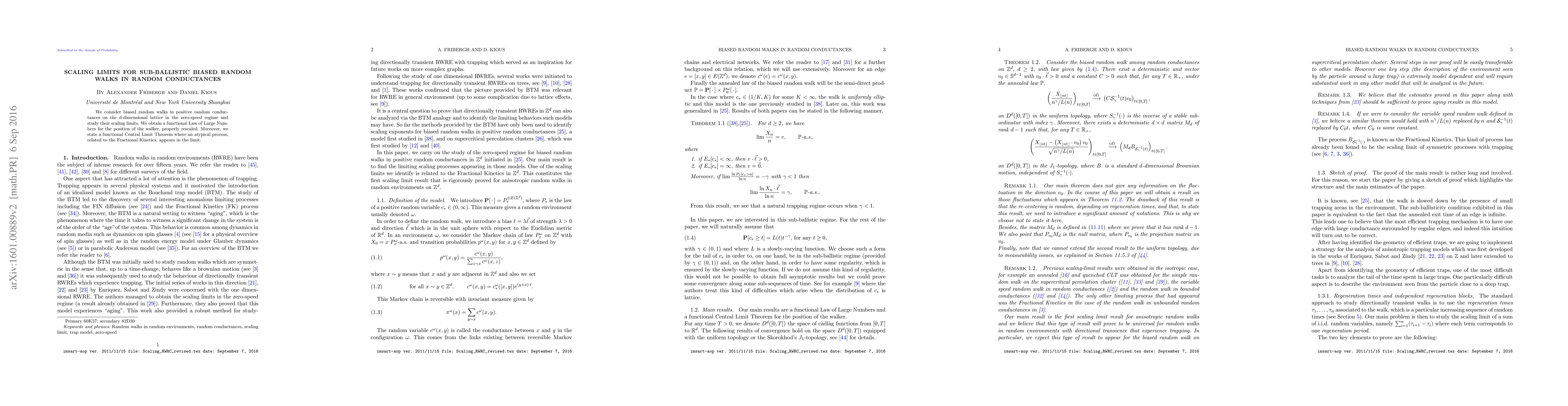 This paper examines biased random walks on d-dimensional lattices with random conductances in the zero-speed regime, demonstrating a functional Law of Large Numbers for rescaled walker positions. It also presents a functional Central Limit Theorem featuring an atypical Fractional Kinetics process in the scaling limit.