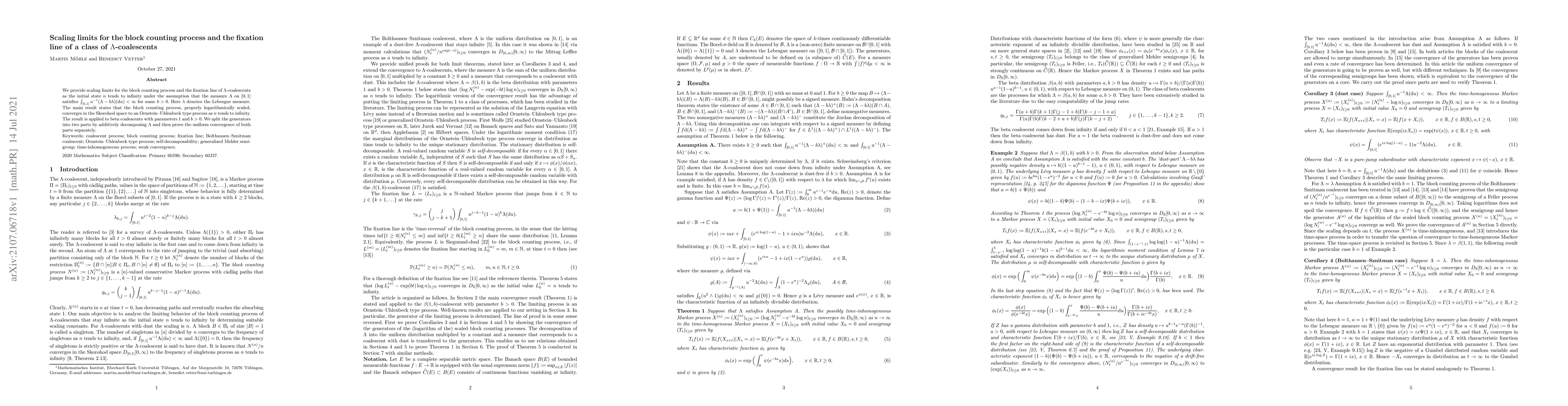 We provide scaling limits for the block counting process and the fixation line of $\Lambda$-coalescents as the initial state $n$ tends to infinity under the assumption that the measure $\Lambda$ on $[0,1]$ satisfies $\int_{[0,1]}u^{-1}(\Lambda-b\lambda)({\rm d}u)<\infty$ for some $b>0$. Here $\lambda$ denotes the Lebesgue measure. The main result states that the block counting process, properly logarithmically scaled, converges in the Skorohod space to an Ornstein--Uhlenbeck type process as $n$ tends to infinity. The result is applied to beta coalescents with parameters $1$ and $b>0$. We split the generators into two parts by additively decomposing Lambda and then prove the uniform convergence of both parts separately.