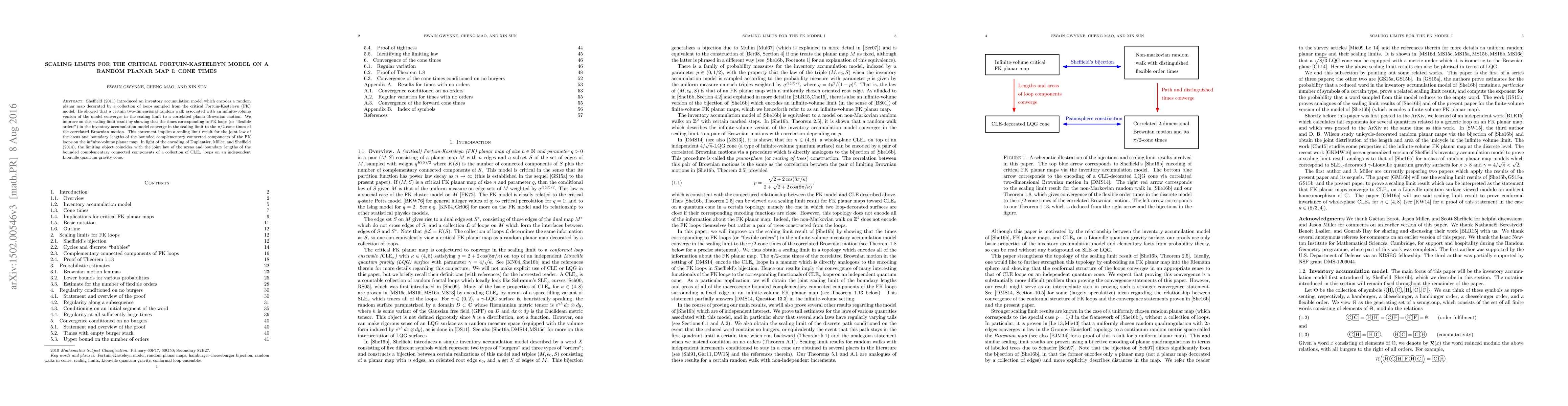 Sheffield (2011) introduced an inventory accumulation model which encodes a random planar map decorated by a collection of loops sampled from the critical Fortuin-Kasteleyn (FK) model. He showed that a certain two-dimensional random walk associated with an infinite-volume version of the model converges in the scaling limit to a correlated planar Brownian motion. We improve on this scaling limit result by showing that the times corresponding to FK loops (or "flexible orders") in the inventory accumulation model converge in the scaling limit to the $\pi/2$-cone times of the correlated Brownian motion. This statement implies a scaling limit result for the joint law of the areas and boundary lengths of the bounded complementary connected components of the FK loops on the infinite-volume planar map. In light of the encoding of Duplantier, Miller, and Sheffield (2014), the limiting object coincides with the joint law of the areas and boundary lengths of the bounded complementary connected components of a collection of CLE$_\kappa$ loops on an independent Liouville quantum gravity cone.