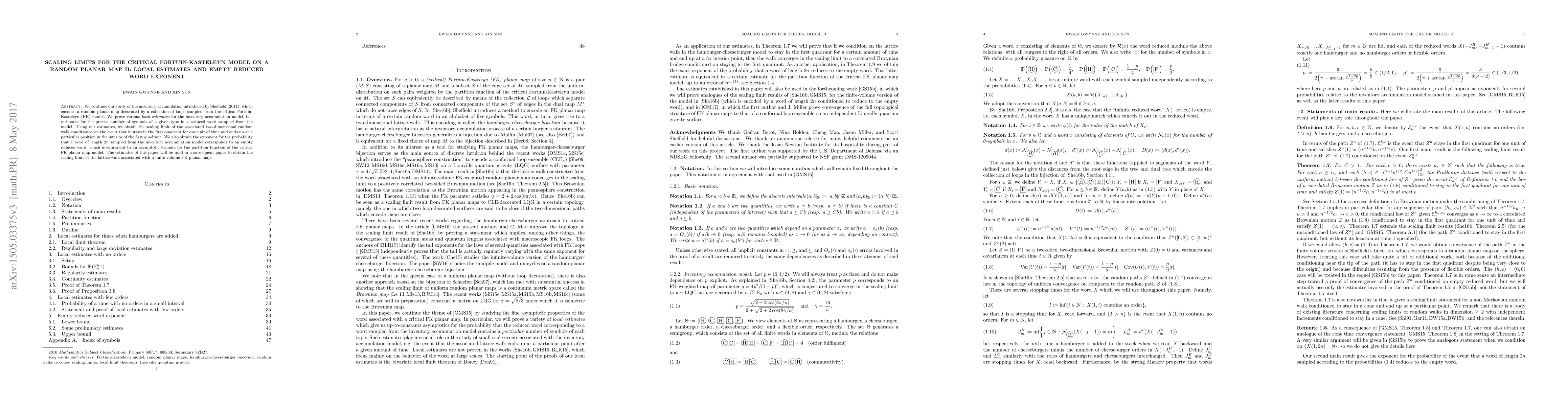 We continue our study of the inventory accumulation introduced by Sheffield (2011), which encodes a random planar map decorated by a collection of loops sampled from the critical Fortuin-Kasteleyn (FK) model. We prove various \emph{local estimates} for the inventory accumulation model, i.e., estimates for the precise number of symbols of a given type in a reduced word sampled from the model. Using our estimates, we obtain the scaling limit of the associated two-dimensional random walk conditioned on the event that it stays in the first quadrant for one unit of time and ends up at a particular position in the interior of the first quadrant. We also obtain the exponent for the probability that a word of length $2n$ sampled from the inventory accumulation model corresponds to an empty reduced word, which is equivalent to an asymptotic formula for the partition function of the critical FK planar map model. The estimates of this paper will be used in a subsequent paper to obtain the scaling limit of the lattice walk associated with a finite-volume FK planar map.
