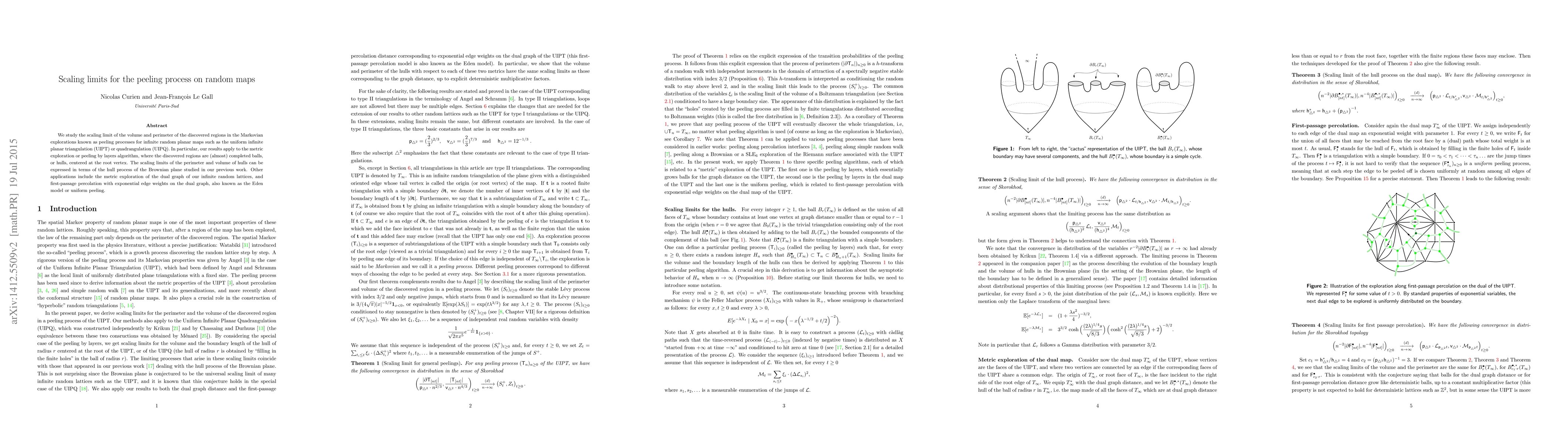 We study the scaling limit of the volume and perimeter of the discovered regions in the Markovian explorations known as peeling processes for infinite random planar maps such as the uniform infinite planar triangulation (UIPT) or quadrangulation (UIPQ). In particular, our results apply to the metric exploration or peeling by layers algorithm, where the discovered regions are (almost) completed balls, or hulls, centered at the root vertex. The scaling limits of the perimeter and volume of hulls can be expressed in terms of the hull process of the Brownian plane studied in our previous work. Other applications include the metric exploration of the dual graph of our infinite random lattices, and first-passage percolation with exponential edge weights on the dual graph, also known as the Eden model or uniform peeling.