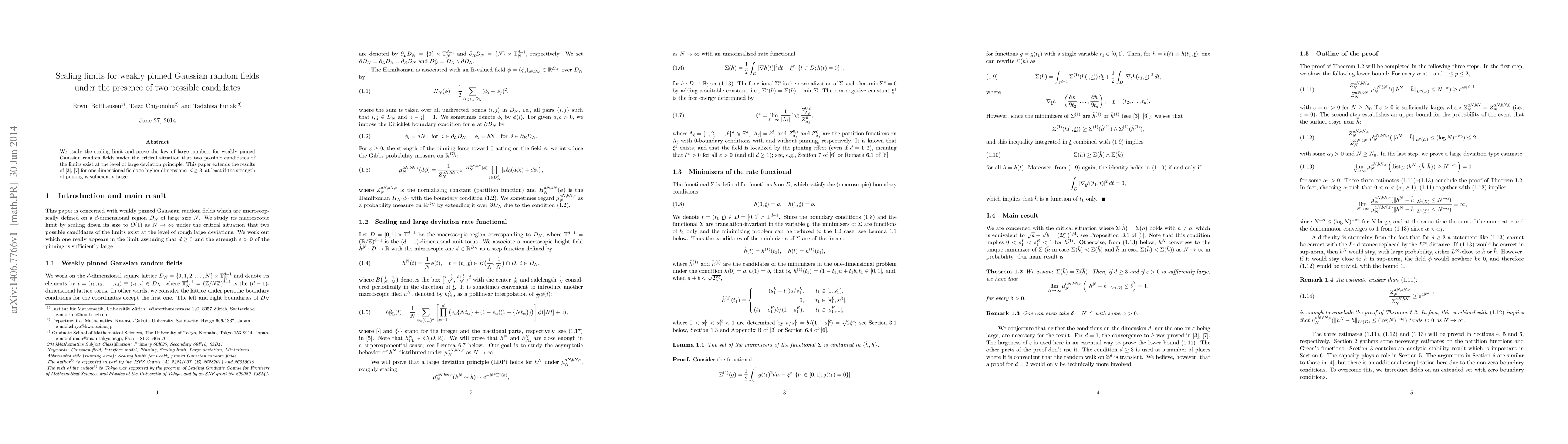 This paper investigates the scaling limits of weakly pinned Gaussian random fields in higher dimensions (d ≥ 3) where two possible large deviation candidates exist. It extends previous results for one-dimensional fields and proves the law of large numbers under sufficiently large pinning strength.