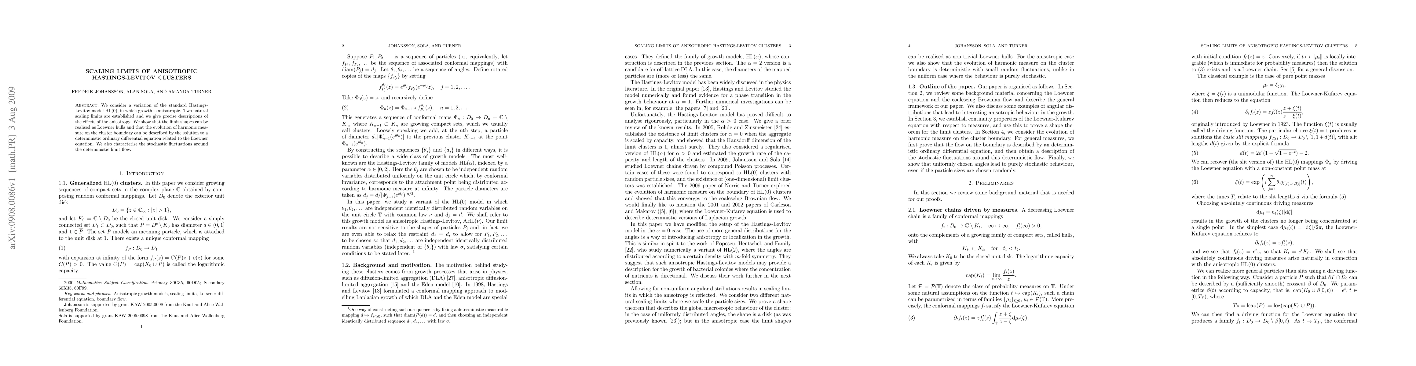 Researchers studied a variation of the Hastings-Levitov model with anisotropic growth, establishing two scaling limits and describing their effects on cluster shapes and boundary harmonic measure. The deterministic limit is related to the Loewner equation, while stochastic fluctuations around this flow are characterized.