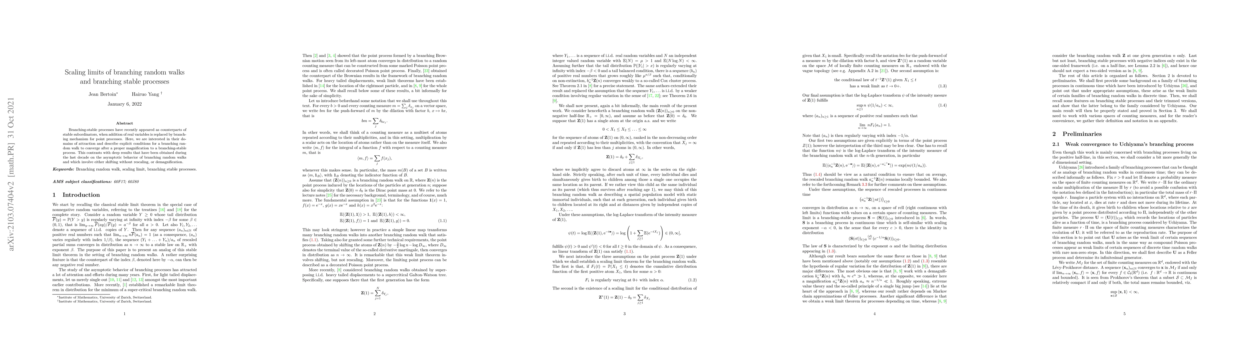 This paper investigates the scaling limits of branching random walks, establishing conditions under which they converge to branching-stable processes after appropriate magnification. It contrasts with previous studies focusing on shifts without rescaling or demagnification.