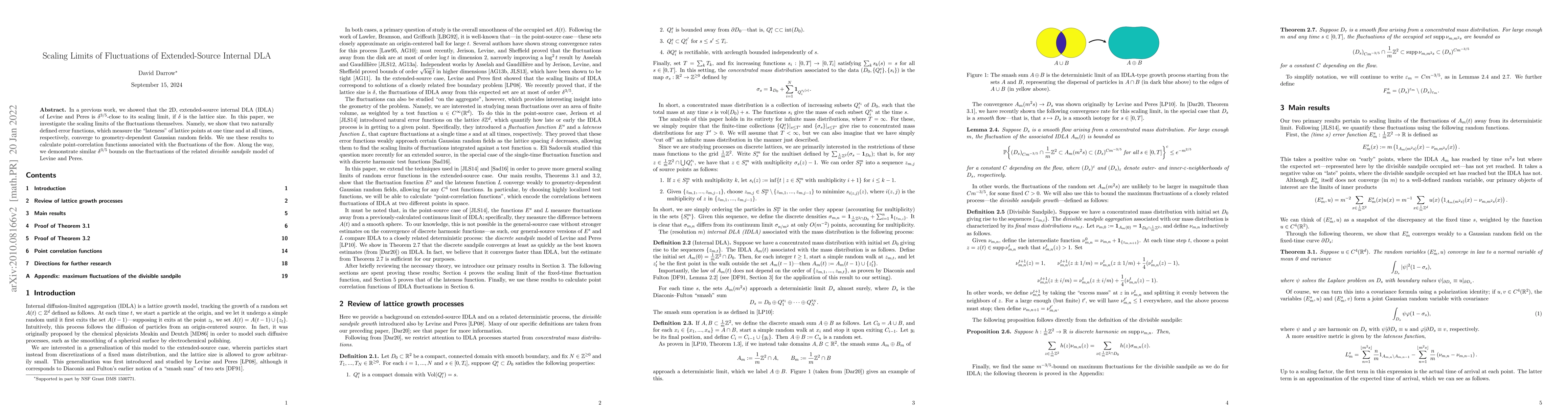 In a previous work, we showed that the 2D, extended-source internal DLA (IDLA) of Levine and Peres is $\delta^{3/5}$-close to its scaling limit, if $\delta$ is the lattice size. In this paper, we investigate the scaling limits of the fluctuations themselves. Namely, we show that two naturally defined error functions, which measure the "lateness" of lattice points at one time and at all times, respectively, converge to geometry-dependent Gaussian random fields. We use these results to calculate point-correlation functions associated with the fluctuations of the flow. Along the way, we demonstrate similar $\delta^{3/5}$ bounds on the fluctuations of the related divisible sandpile model of Levine and Peres.