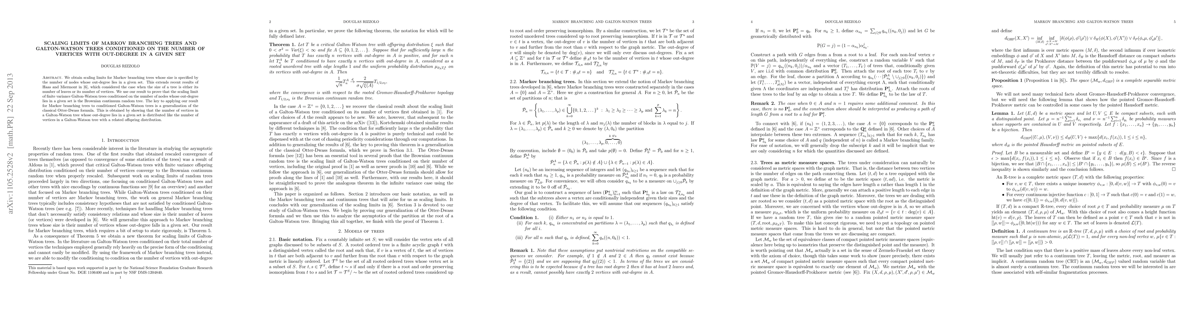 This paper generalizes scaling limits of Markov branching trees conditioned on the out-degree of nodes, leading to the conclusion that the finite variance Galton-Watson trees under similar conditions converge to the Brownian continuum random tree, facilitated by a generalized Otter-Dwass formula.