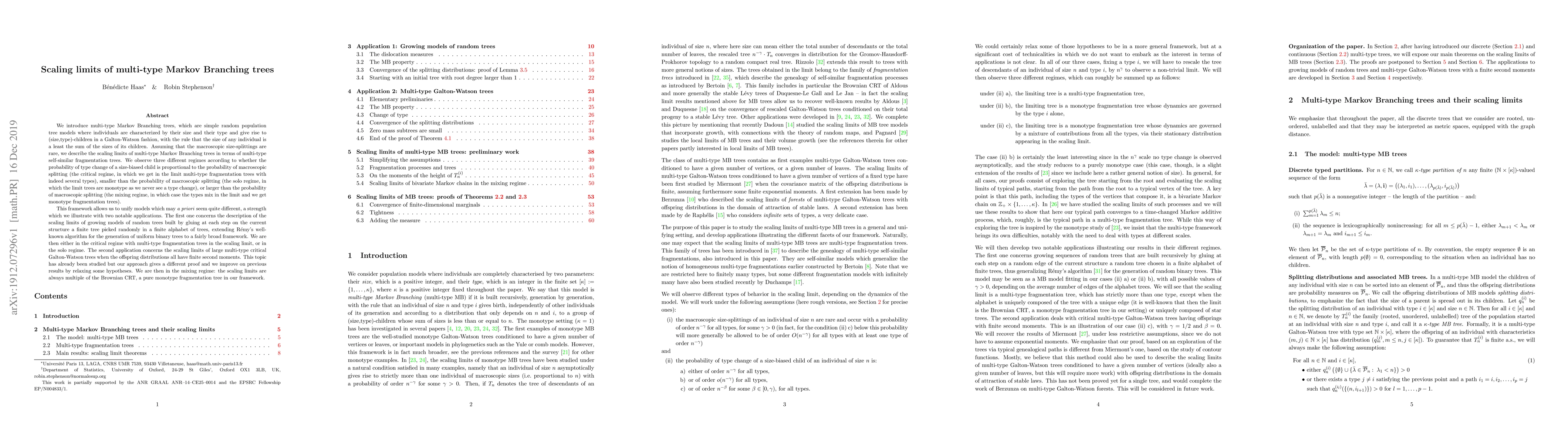 This paper studies the scaling limits of multi-type Markov Branching trees, revealing three regimes based on the probability of type change relative to macroscopic splitting. It unifies various random tree models and provides improved results for large multi-type critical Galton-Watson trees.