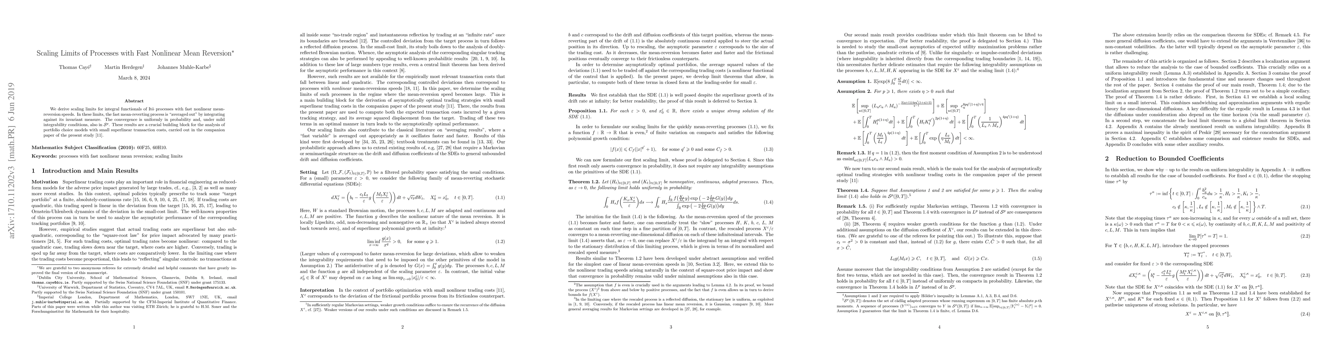 This paper derives scaling limits for integral functionals of Itô processes with fast nonlinear mean reversion, showing that the fast mean-reverting process is averaged out by integrating against its invariant measure. These convergence results are essential for analyzing portfolio choice models with small superlinear transaction costs.