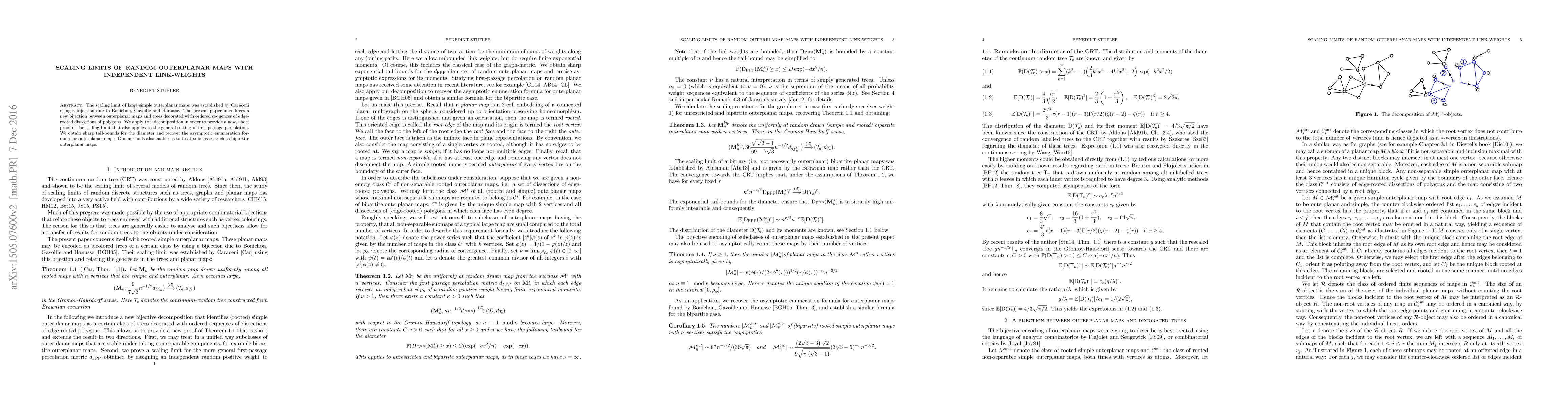 The scaling limit of large simple outerplanar maps was established by Caraceni using a bijection due to Bonichon, Gavoille and Hanusse. The present paper introduces a new bijection between outerplanar maps and trees decorated with ordered sequences of edge-rooted dissections of polygons. We apply this decomposition in order to provide a new, short proof of the scaling limit that also applies to the general setting of first-passage percolation. We obtain sharp tail-bounds for the diameter and recover the asymptotic enumeration formula for outerplanar maps. Our methods also enable us treat subclasses such as bipartite outerplanar maps.