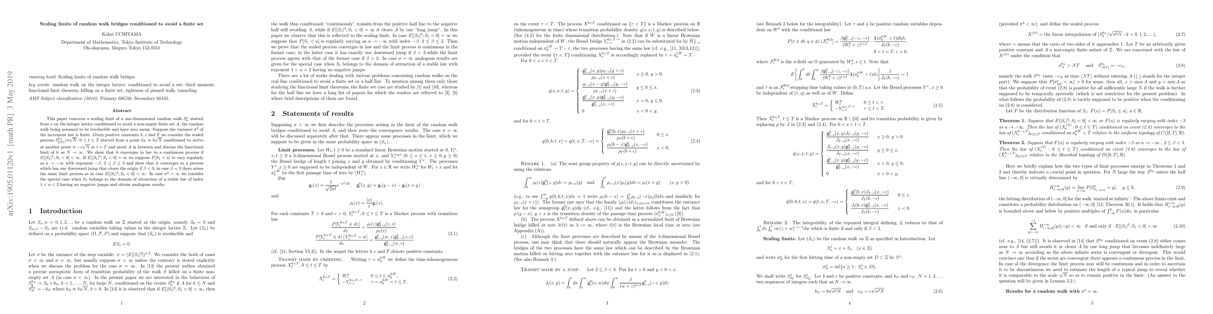 This paper investigates the scaling limit of a one-dimensional random walk conditioned to avoid a finite set, finding it converges in law to a continuous process under certain conditions or has a specific limiting behavior if other conditions apply.