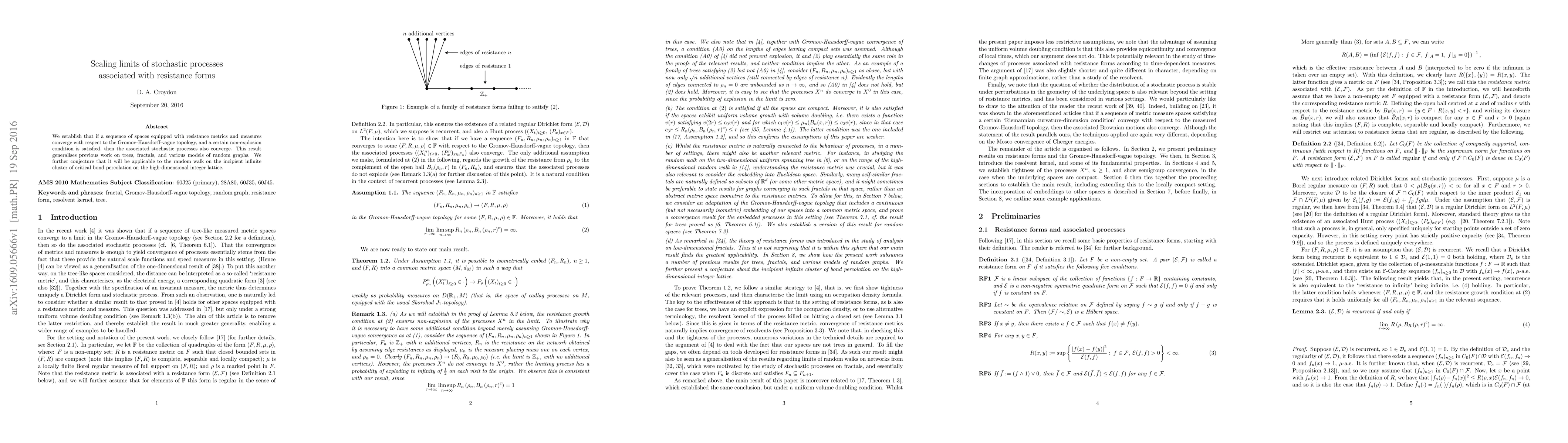 This paper proves that stochastic processes linked to sequences of spaces with converging resistance metrics and measures, under a non-explosion condition, also converge. This generalizes prior results for trees, fractals, and random graphs, and suggests potential application to random walks in critical percolation models.