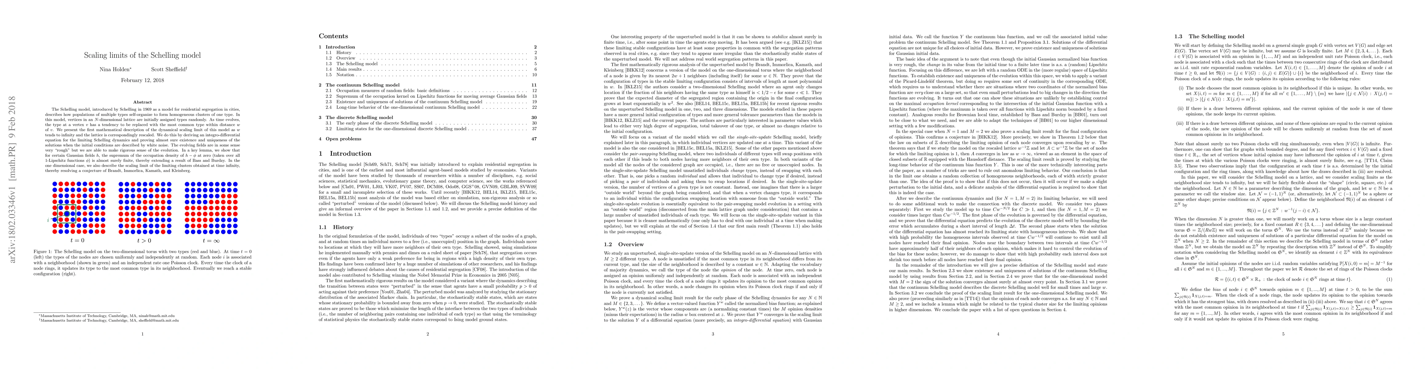 The Schelling model, introduced by Schelling in 1969 as a model for residential segregation in cities, describes how populations of multiple types self-organize to form homogeneous clusters of one type. In this model, vertices in an $N$-dimensional lattice are initially assigned types randomly. As time evolves, the type at a vertex $v$ has a tendency to be replaced with the most common type within distance $w$ of $v$. We present the first mathematical description of the dynamical scaling limit of this model as $w$ tends to infinity and the lattice is correspondingly rescaled. We do this by deriving an integro-differential equation for the limiting Schelling dynamics and proving almost sure existence and uniqueness of the solutions when the initial conditions are described by white noise. The evolving fields are in some sense very "rough" but we are able to make rigorous sense of the evolution. In a key lemma, we show that for certain Gaussian fields $h$, the supremum of the occupation density of $h-\phi$ at zero (taken over all $1$-Lipschitz functions $\phi$) is almost surely finite, thereby extending a result of Bass and Burdzy. In the one dimensional case, we also describe the scaling limit of the limiting clusters obtained at time infinity, thereby resolving a conjecture of Brandt, Immorlica, Kamath, and Kleinberg.