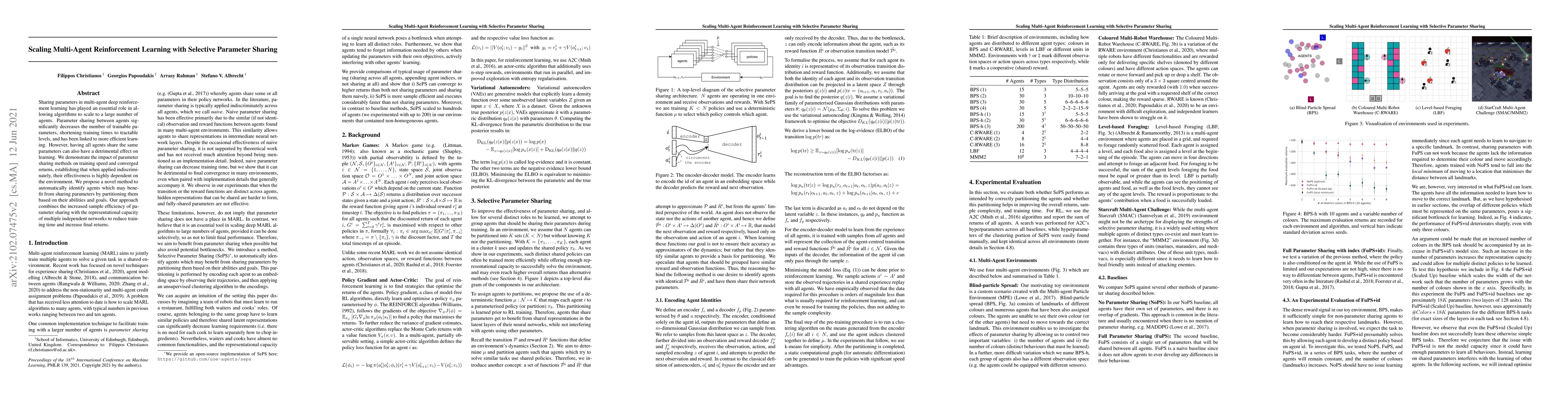 This paper explores selective parameter sharing in multi-agent reinforcement learning to balance efficiency and effectiveness. It proposes a method to identify agents that benefit from shared parameters based on their abilities and goals, aiming to reduce training time and improve final returns.