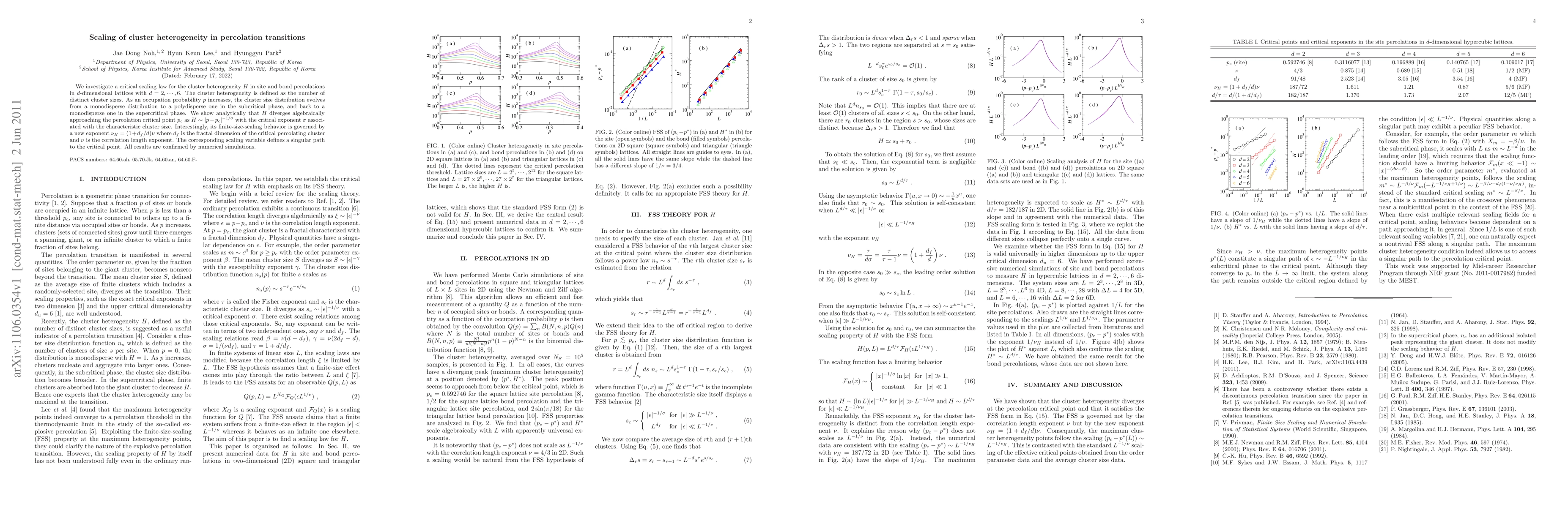 We investigate a critical scaling law for the cluster heterogeneity $H$ in site and bond percolations in $d$-dimensional lattices with $d=2,...,6$. The cluster heterogeneity is defined as the number of distinct cluster sizes. As an occupation probability $p$ increases, the cluster size distribution evolves from a monodisperse distribution to a polydisperse one in the subcritical phase, and back to a monodisperse one in the supercritical phase. We show analytically that $H$ diverges algebraically approaching the percolation critical point $p_c$ as $H\sim |p-p_c|^{-1/\sigma}$ with the critical exponent $\sigma$ associated with the characteristic cluster size. Interestingly, its finite-size-scaling behavior is governed by a new exponent $\nu_H = (1+d_f/d)\nu$ where $d_f$ is the fractal dimension of the critical percolating cluster and $\nu$ is the correlation length exponent. The corresponding scaling variable defines a singular path to the critical point. All results are confirmed by numerical simulations.