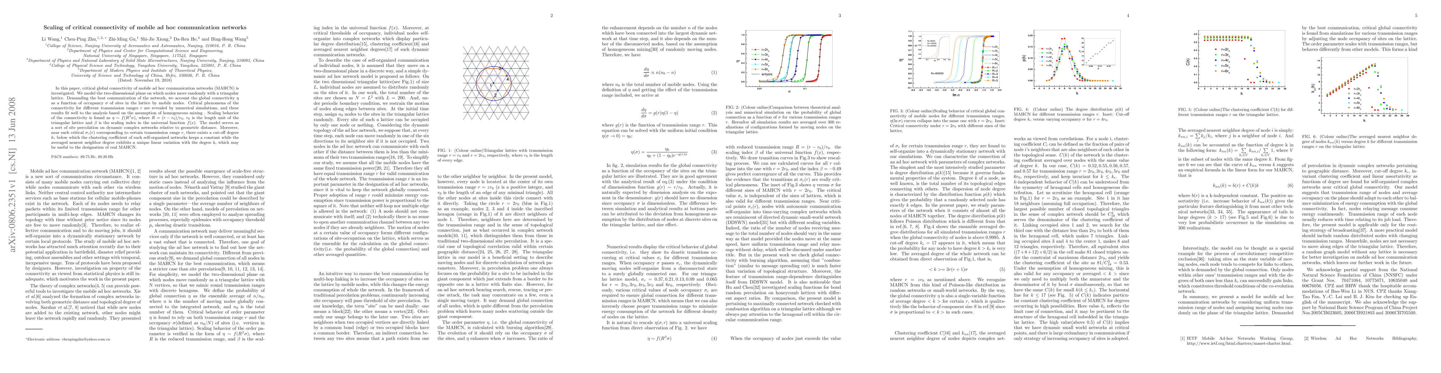 This paper investigates how mobile ad hoc communication networks scale in terms of connectivity, revealing a critical point where global connectivity changes as nodes move randomly on a triangular lattice.