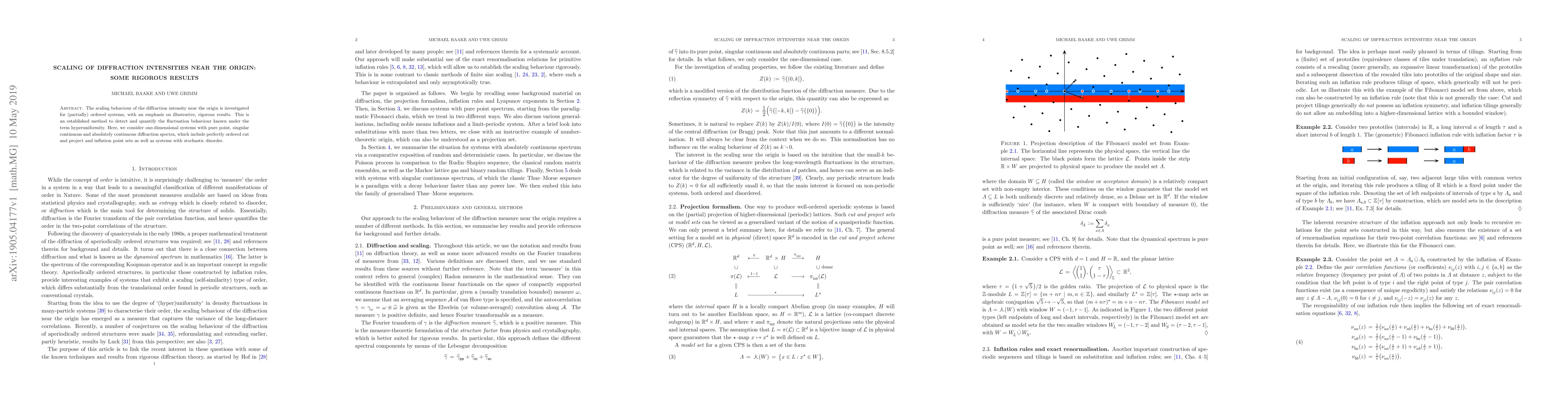 The scaling behaviour of the diffraction intensity near the origin is investigated for (partially) ordered systems, with an emphasis on illustrative, rigorous results. This is an established method to detect and quantify the fluctuation behaviour known under the term hyperuniformity. Here, we consider one-dimensional systems with pure point, singular continuous and absolutely continuous diffraction spectra, which include perfectly ordered cut and project and inflation point sets as well as systems with stochastic disorder.