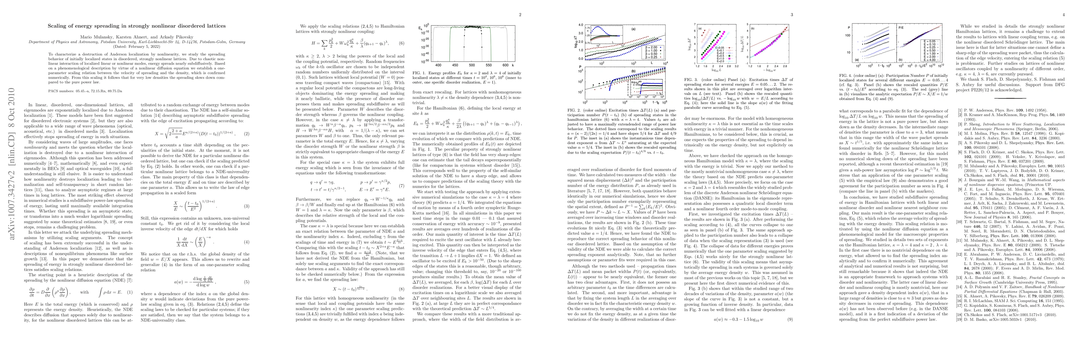 This paper investigates the destruction of Anderson localization in strongly nonlinear disordered lattices, finding that energy spreading occurs nearly subdiffusively due to chaotic nonlinear interactions. A one-parameter scaling relation between the spreading velocity and density is established and confirmed numerically, revealing that the spreading slows down at very low densities compared to a pure power law.