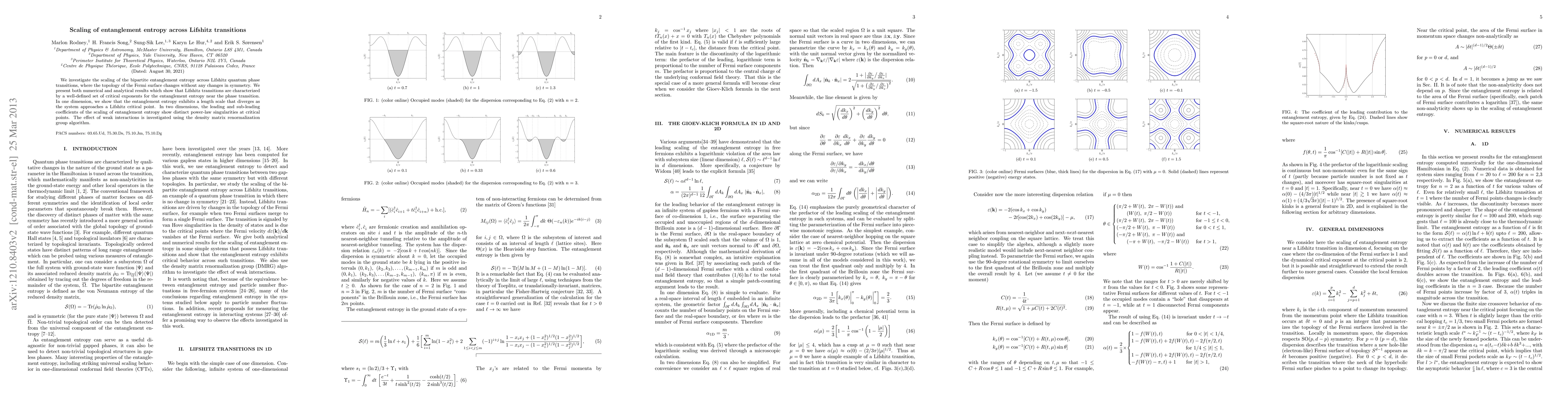 We investigate the scaling of the bipartite entanglement entropy across Lifshitz quantum phase transitions, where the topology of the Fermi surface changes without any changes in symmetry. We present both numerical and analytical results which show that Lifshitz transitions are characterized by a well-defined set of critical exponents for the entanglement entropy near the phase transition. In one dimension, we show that the entanglement entropy exhibits a length scale that diverges as the system approaches a Lifshitz critical point. In two dimensions, the leading and sub-leading coefficients of the scaling of entanglement entropy show distinct power-law singularities at critical points. The effect of weak interactions is investigated using the density matrix renormalization group algorithm.