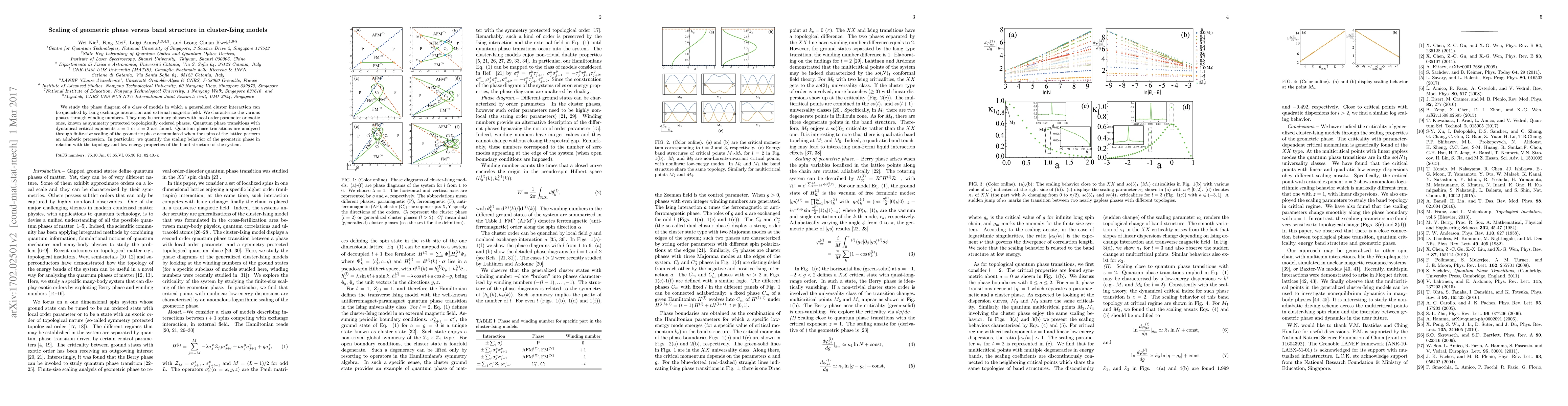 Researchers studied how geometric phase and band structure relate in cluster-Ising models during quantum phase transitions, finding exotic phases and scaling behaviors with dynamical critical exponents.
