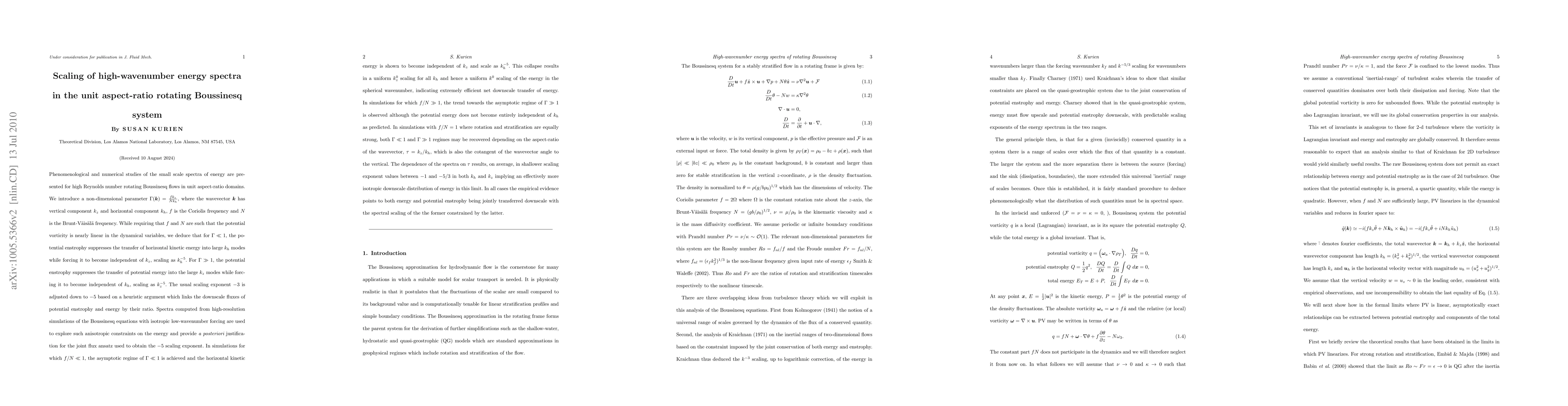This paper explores high Reynolds number rotating Boussinesq flows, introducing a parameter Gamma to describe the energy transfer in unit aspect-ratio domains. It finds that for Gamma < 1, horizontal kinetic energy scales as k_h^{-5}, while for Gamma > 1, vertical potential energy scales as k_z^{-5}, with both showing joint transfer downscale constrained by potential enstrophy.