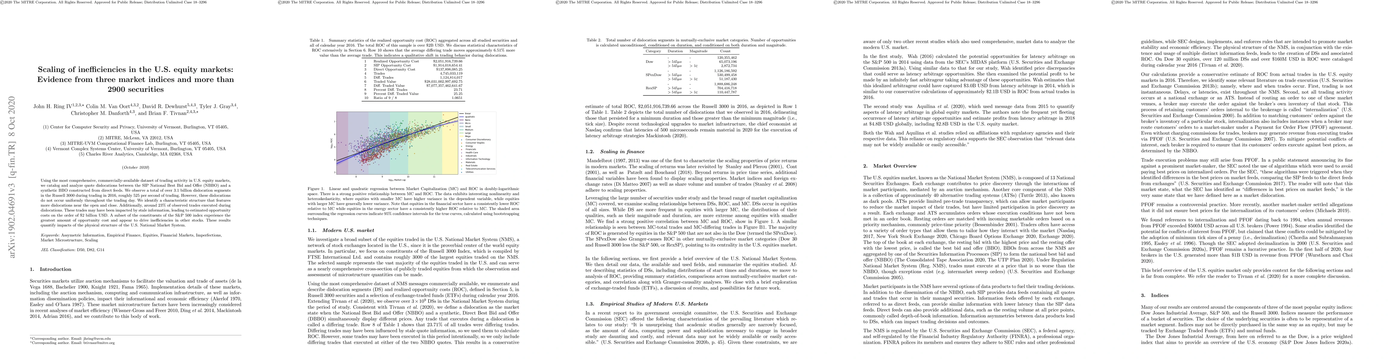 Using the most comprehensive, commercially-available dataset of trading activity in U.S. equity markets, we catalog and analyze quote dislocations between the SIP National Best Bid and Offer (NBBO) and a synthetic BBO constructed from direct feeds. We observe a total of over 3.1 billion dislocation segments in the Russell 3000 during trading in 2016, roughly 525 per second of trading. However, these dislocations do not occur uniformly throughout the trading day. We identify a characteristic structure that features more dislocations near the open and close. Additionally, around 23% of observed trades executed during dislocations. These trades may have been impacted by stale information, leading to estimated opportunity costs on the order of $ 2 billion USD. A subset of the constituents of the S&P 500 index experience the greatest amount of opportunity cost and appear to drive inefficiencies in other stocks. These results quantify impacts of the physical structure of the U.S. National Market System.