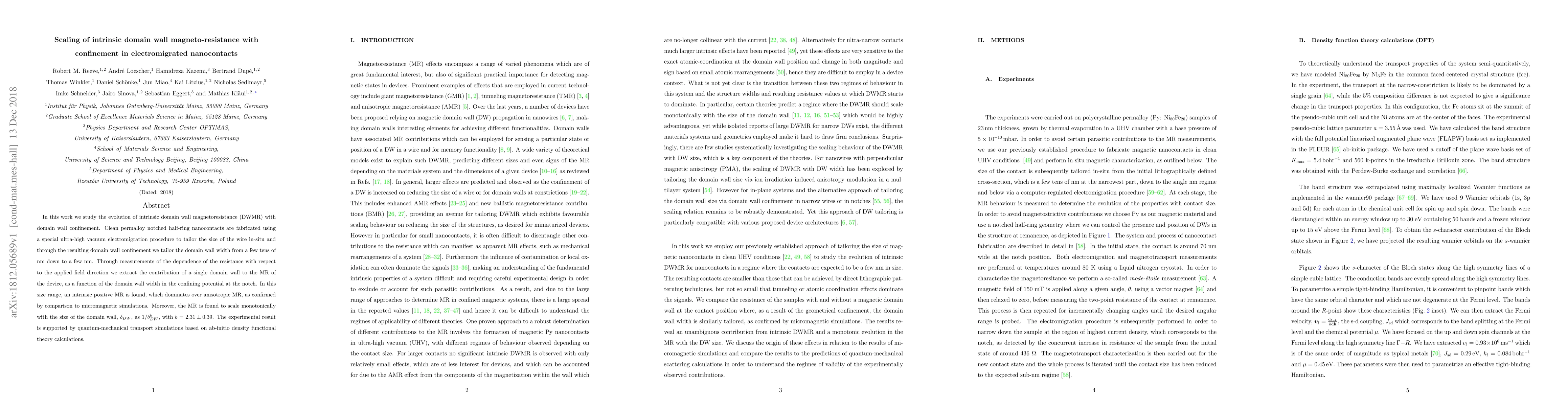 This study investigates the intrinsic domain wall magnetoresistance (DWMR) in permalloy nanocontacts, finding that it scales inversely with the domain wall width as 1/$\delta_{DW}^{2.31\pm 0.39}$. The research uses electromigration to precisely control domain wall confinement and confirms the findings through micromagnetic simulations and quantum-mechanical transport simulations.