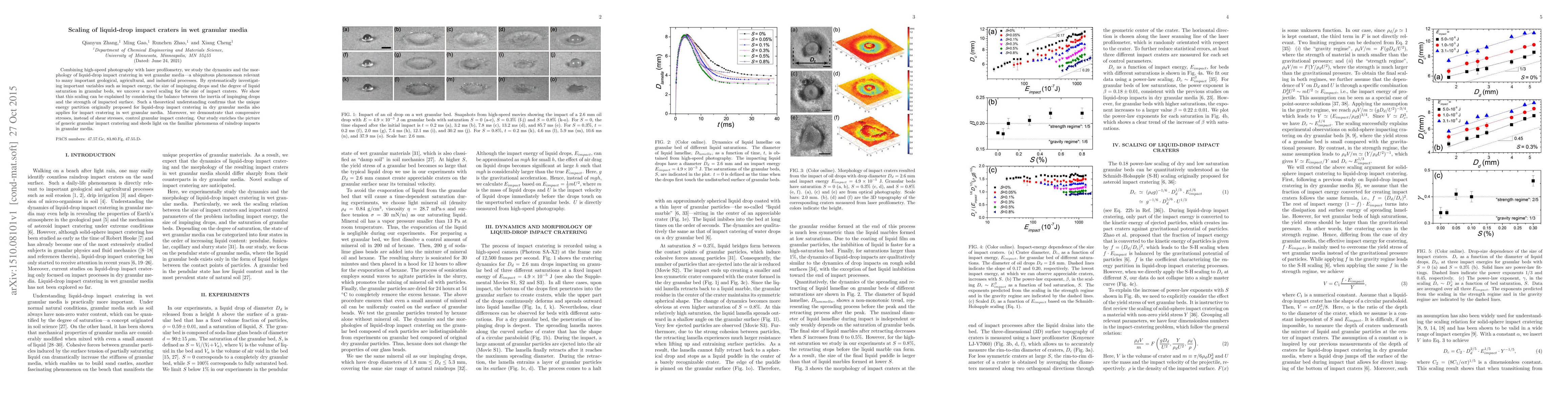 This study combines high-speed photography and laser profilometry to investigate liquid-drop impact craters in wet granular media, revealing a novel scaling based on the balance between drop inertia and surface strength. The findings suggest that compressive stresses, not shear stresses, govern the cratering process, extending the understanding of impact cratering from dry to wet granular media.