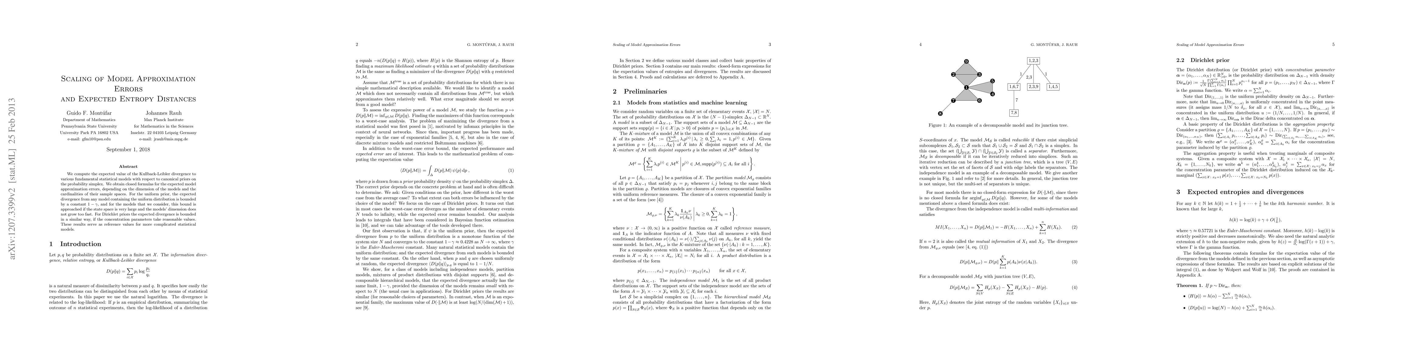 We compute the expected value of the Kullback-Leibler divergence to various fundamental statistical models with respect to canonical priors on the probability simplex. We obtain closed formulas for the expected model approximation errors, depending on the dimension of the models and the cardinalities of their sample spaces. For the uniform prior, the expected divergence from any model containing the uniform distribution is bounded by a constant $1-\gamma$, and for the models that we consider, this bound is approached if the state space is very large and the models' dimension does not grow too fast. For Dirichlet priors the expected divergence is bounded in a similar way, if the concentration parameters take reasonable values. These results serve as reference values for more complicated statistical models.