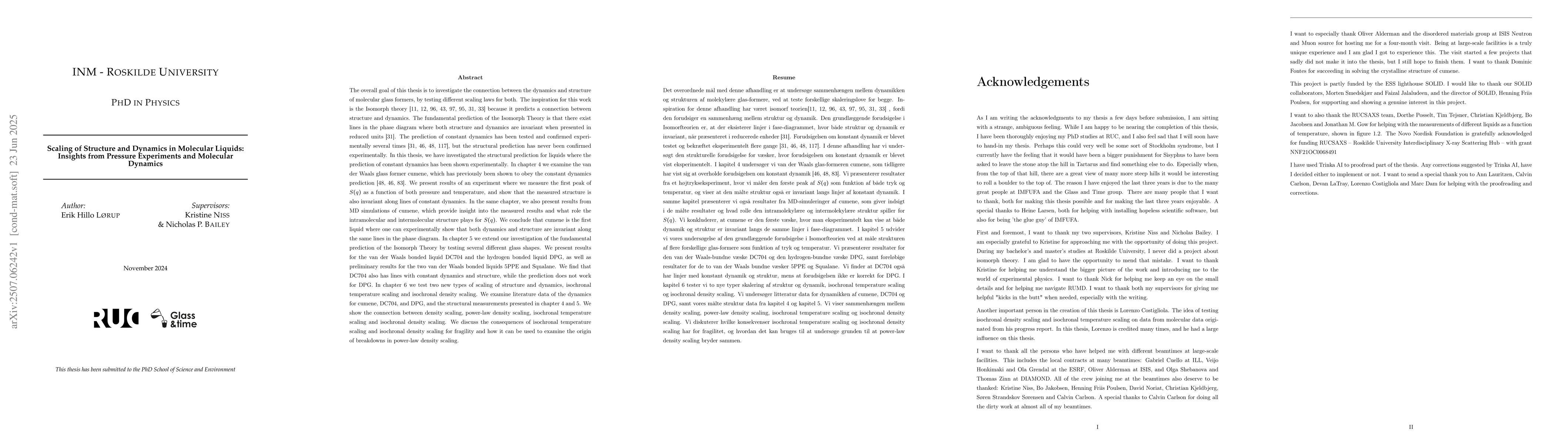The overall goal of this thesis is to investigate the connection between the dynamics and structure of molecular glass formers, by testing different scaling laws for both. The inspiration for this work is the Isomorph theory because it predicts a connection between structure and dynamics. The fundamental prediction of the Isomorph Theory is that there exist lines in the phase diagram where both structure and dynamics are invariant when presented in reduced units. The prediction of constant dynamics has been tested and confirmed experimentally several times, but the structural prediction has never been confirmed experimentally. In this thesis, we have investigated the structural prediction for liquids where the prediction of constant dynamics has been shown experimentally.