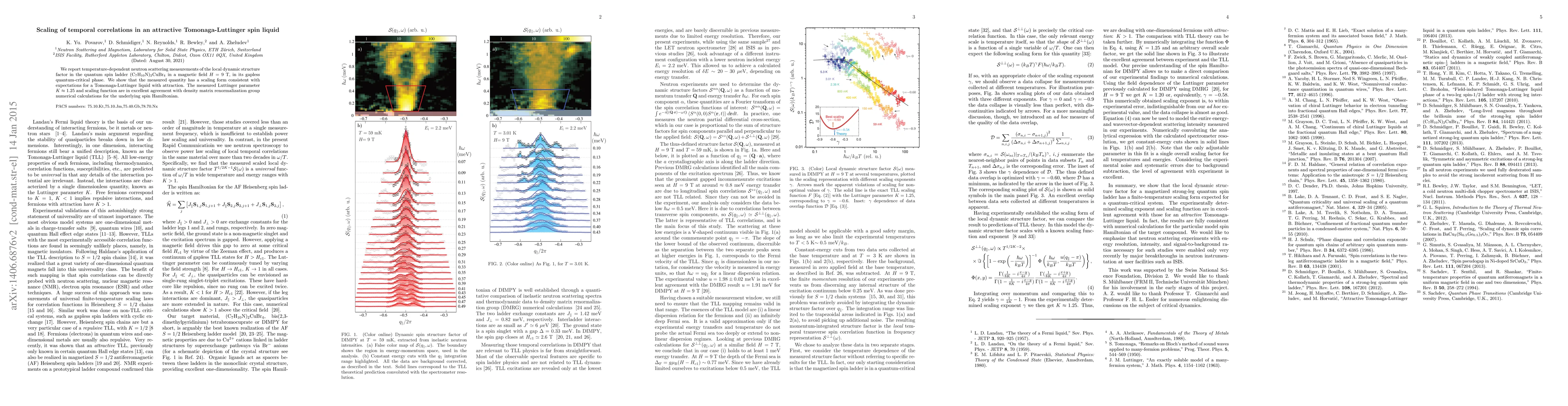 This study reports temperature-dependent neutron scattering measurements in a quantum spin ladder system, revealing a scaling form consistent with an attractive Tomonaga-Luttinger liquid. The Luttinger parameter and scaling function align well with numerical density matrix renormalization group calculations.
