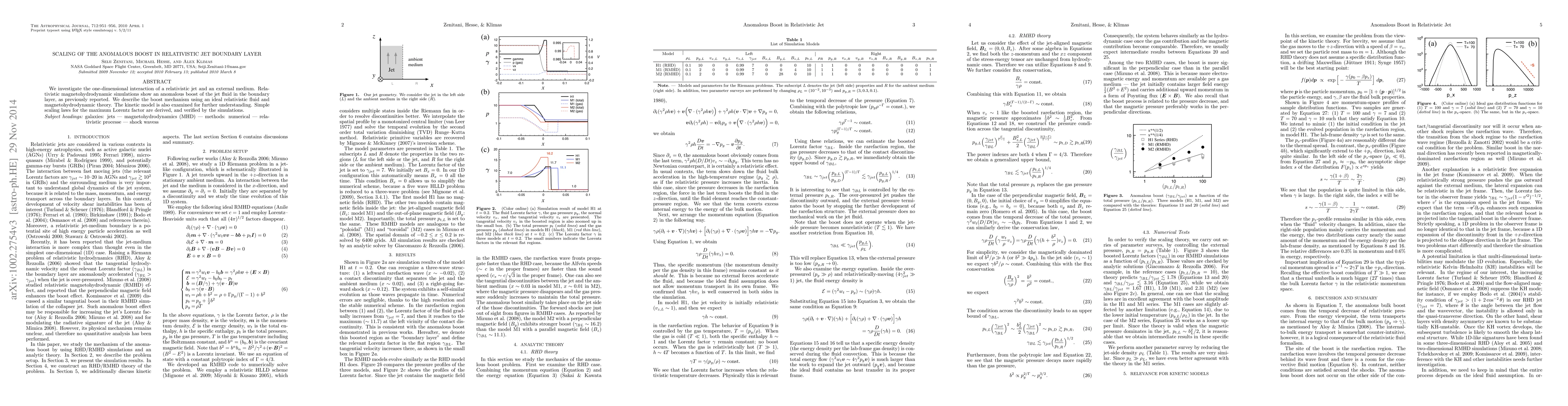 This paper explores the interaction between a relativistic jet and an external medium, revealing an anomalous boost in the jet fluid's boundary layer through relativistic magnetohydrodynamic simulations. The study derives and verifies scaling laws for the maximum Lorentz factor using ideal relativistic fluid and magnetohydrodynamic theory.