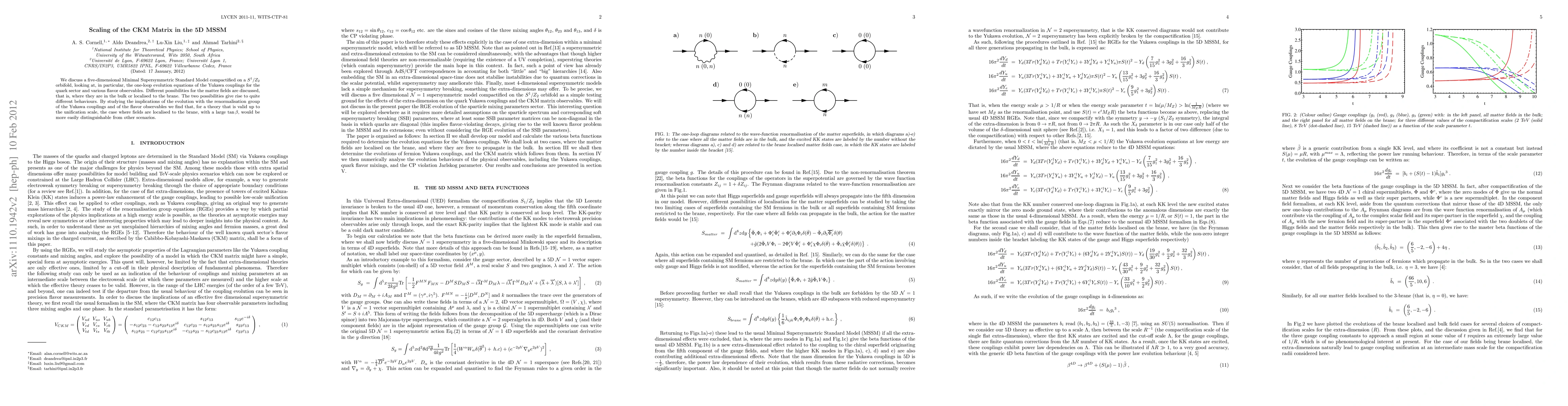 We discuss a five-dimensional Minimal Supersymmetric Standard Model compactified on a $S^1/Z_2$ orbifold, looking at, in particular, the one-loop evolution equations of the Yukawa couplings for the quark sector and various flavor observables. Different possibilities for the matter fields are discussed, that is, where they are in the bulk or localised to the brane. The two possibilities give rise to quite different behaviours. By studying the implications of the evolution with the renormalisation group of the Yukawa couplings and of the flavor observables we find that, for a theory that is valid up to the unification scale, the case where fields are localised to the brane, with a large $\tan\beta$, would be more easily distinguishable from other scenarios.