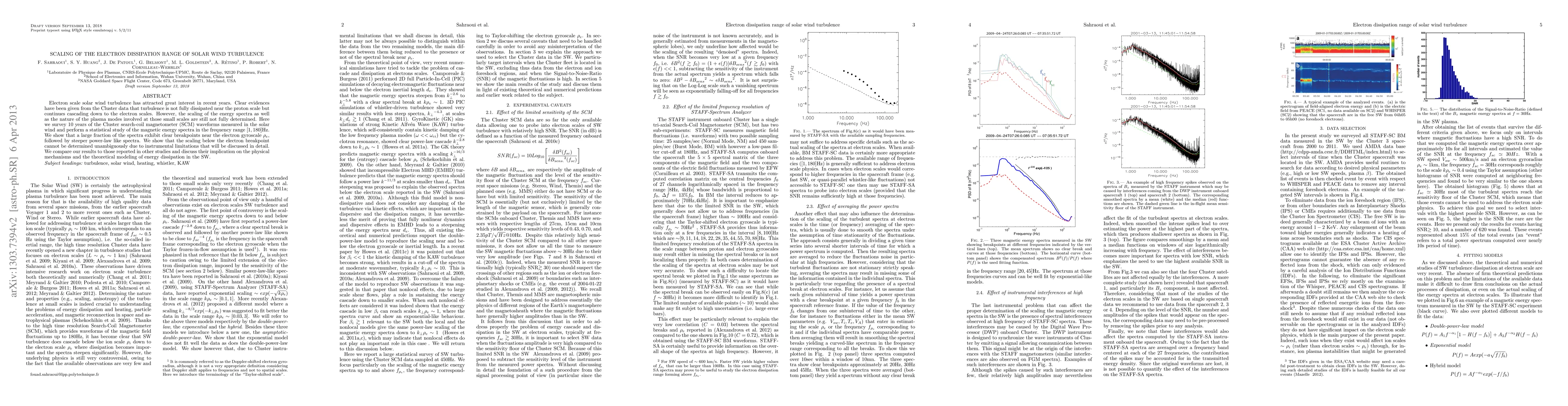 Electron scale solar wind turbulence has attracted great interest in recent years. Clear evidences have been given from the Cluster data that turbulence is not fully dissipated near the proton scale but continues cascading down to the electron scales. However, the scaling of the energy spectra as well as the nature of the plasma modes involved at those small scales are still not fully determined. Here we survey 10 years of the Cluster search-coil magnetometer (SCM) waveforms measured in the solar wind and perform a statistical study of the magnetic energy spectra in the frequency range [$1, 180$]Hz. We show that a large fraction of the spectra exhibit clear breakpoints near the electon gyroscale $\rho_e$, followed by steeper power-law like spectra. We show that the scaling below the electron breakpoint cannot be determined unambiguously due to instrumental limitations that will be discussed in detail. We compare our results to recent ones reported in other studies and discuss their implication on the physical mechanisms and the theoretical modeling of energy dissipation in the SW.