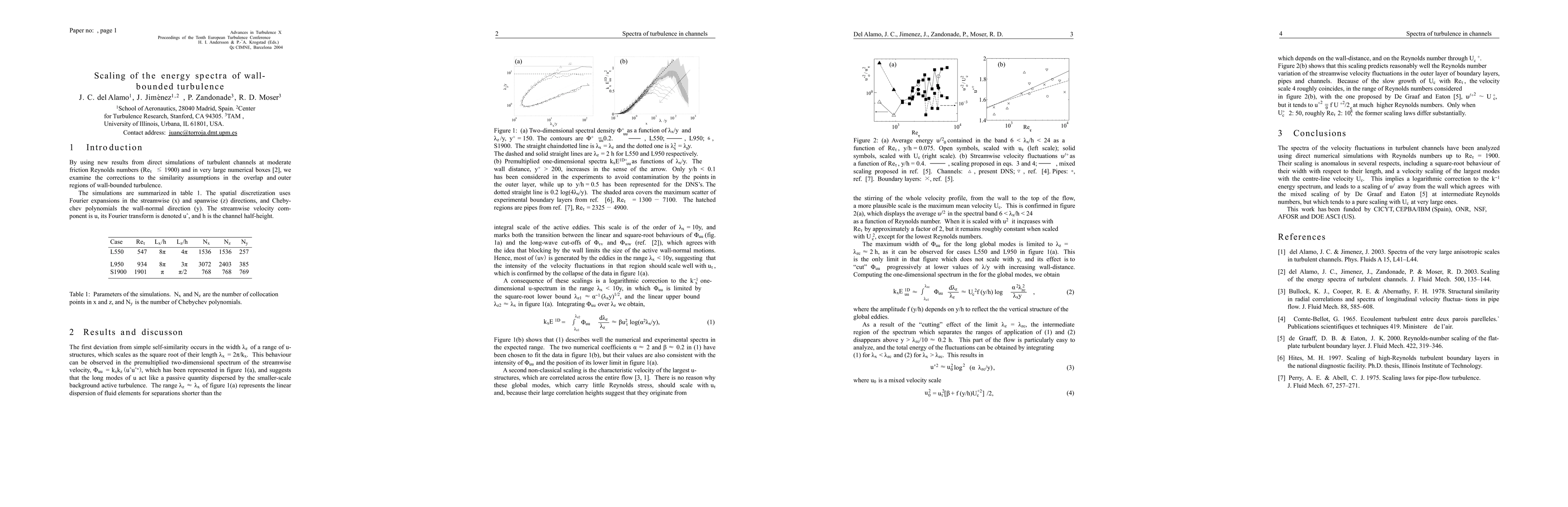 This paper investigates the energy spectra of wall-bounded turbulence through direct simulations at moderate friction Reynolds numbers, focusing on the corrections needed for similarity assumptions in the overlap and outer regions. The findings provide insights into the scaling behavior of turbulent flows in these regions.